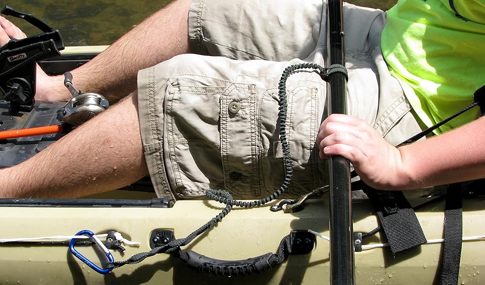 Made in the USA, CK Gear Leash Series. Your choice, Standard length in OD Green or Extended Length in Black. The woven design will not overstretch and loose elasticity. Sewn with industrial nylon thread with a 66 stitch bar-tack. The Carabiner is a Large 8cm Aluminum carabiner with a Stainless Steel Gate, Salt water tough. No plastic clip or Velcro to give problems. Quality you can count from long time Kayakers. Designed, Tested and Made in the USA. We know what works and this is it.