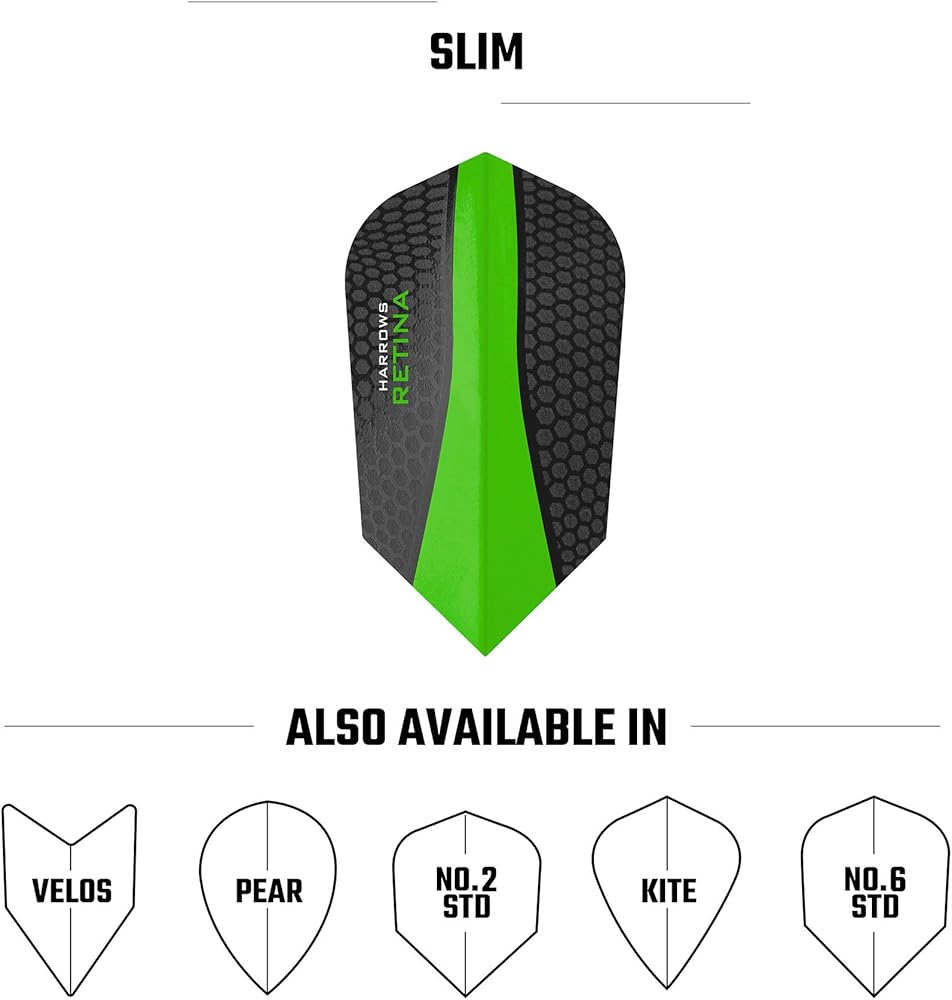 The Retina 100 micron flight is a unique fusion of a high definition translucent central display with a tough outer performance laminate. The central display promotes an accurate and consistent throw, while the outer performance laminate gives exceptional strength and endurance. 5 sets of 3 Extra strong 100 Micron flights built for maximum precision and durability. The slim shape is one of the smallest flights meaning it offers a significant boost to flight speed at the expense of of some lift. Available in a range of ultra stylish colours to make sure your darts are as individual as you.