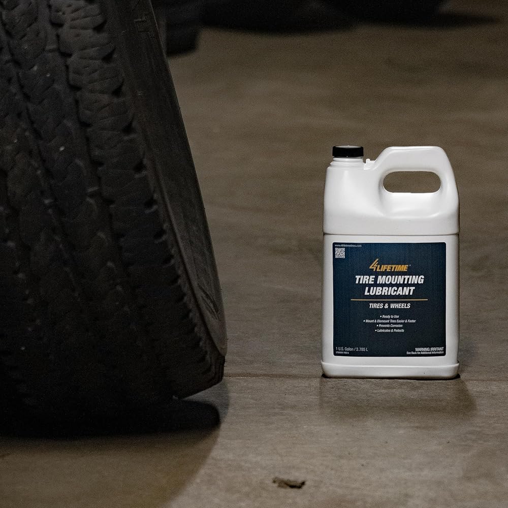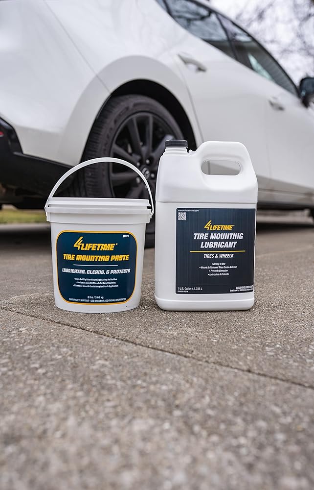 4Lifetime Tire Mounting Lube is an essential tool for seamless tire mounting and dismounting procedures. This specially formulated tire bead lubricant is adept at ensuring thorough lubrication of all rubber components within the tire assembly, safeguarding against bead damage and preventing slippage post-mounting and balancing. The lube excels in correctly seating tire beads onto rims, which is crucial for avoiding any unwanted noise in bushings and grommets. Moreover, this versatile tire mounting compound does more than just aid in tire installation. It can also rejuvenate the appearance of floor mats, tires, and upholstery, giving them a fresh, new look. The 4Lifetime Tire Mounting Lube comes in a convenient tire lube bucket, complete with a tire lube brush, making application effortless and efficient. It's a perfect match for use with tire mounting machines, ensuring a smooth and effective tire change every time. Whether you're using tire bead lube, tire changing lube, or tire soap for mounting tires, the 4Lifetime product stands out as a high-performance tire paste. It acts as a bead sealer for tires, ensuring a secure and perfect fit during tire installation. This tire mounting lubricant is an indispensable component in your tire service toolkit, providing a professional finish and lasting results.