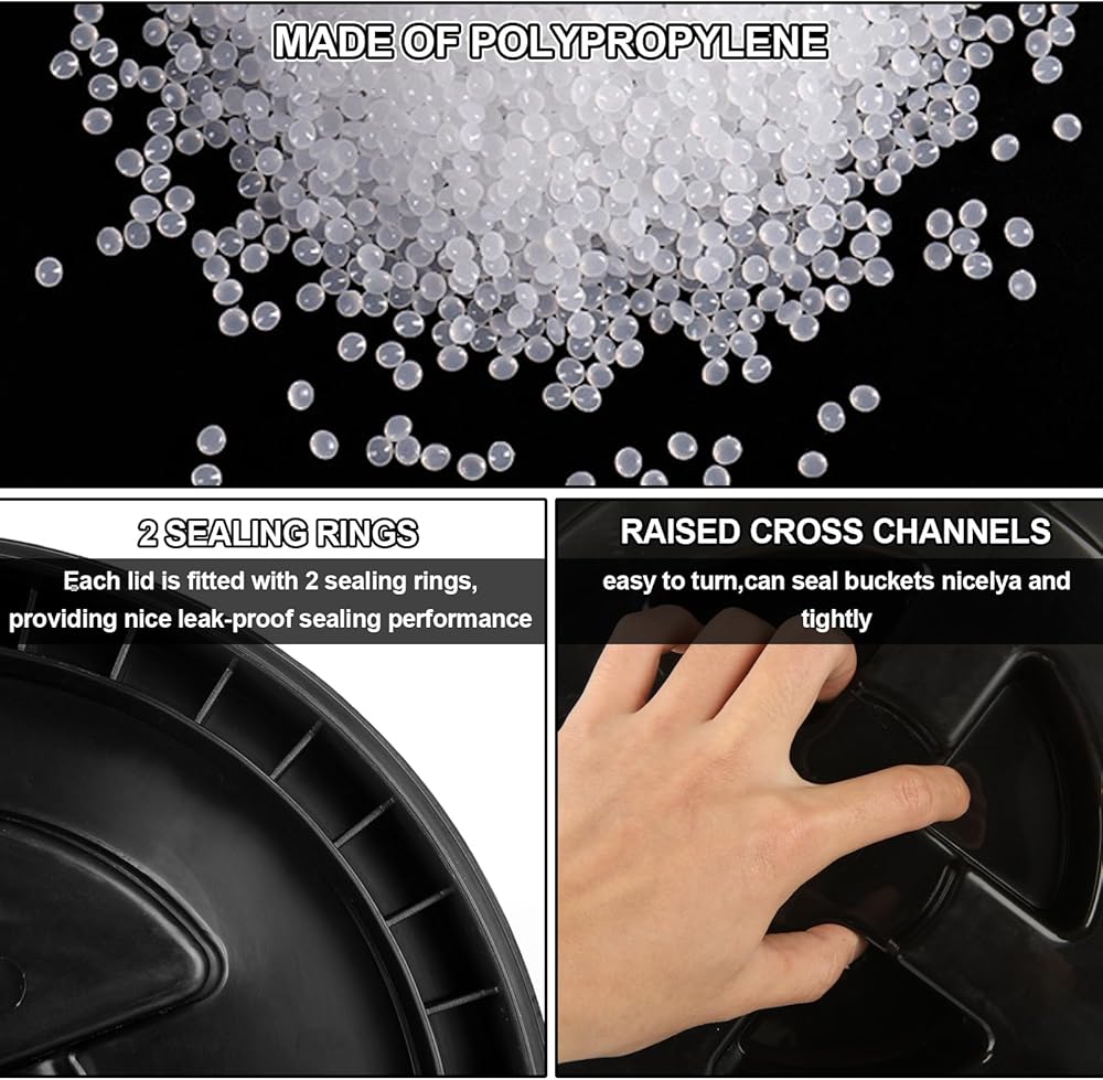 • المواصفات: 12 × 12 × 1.5 بوصة لكل غطاء دلو سعة 5 جالون، غطاء الدلو المناسب للطعام مناسب لبراميل بلاستيكية سعة 5 جالون. سوف تحصل على 4 أغطية دلو مقاومة للبراغي. غطاء الختم قابل للتكديس أيضًا، مما يجعله مناسبًا للتخزين والنقل.