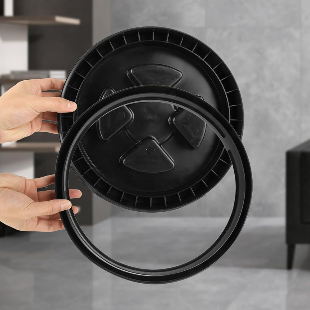 4 قطع 5 جالون غطاء دلو مانع للتسرب دلاء تخزين بلاستيكية من الدرجة الغذائية، أغطية سدادة لولبية، غطاء سطل لولبي، تخزين أغذية الحيوانات الأليفة، مغذيات الدجاج، تخزين الطلاء المتوافق مع غاما (أسود)