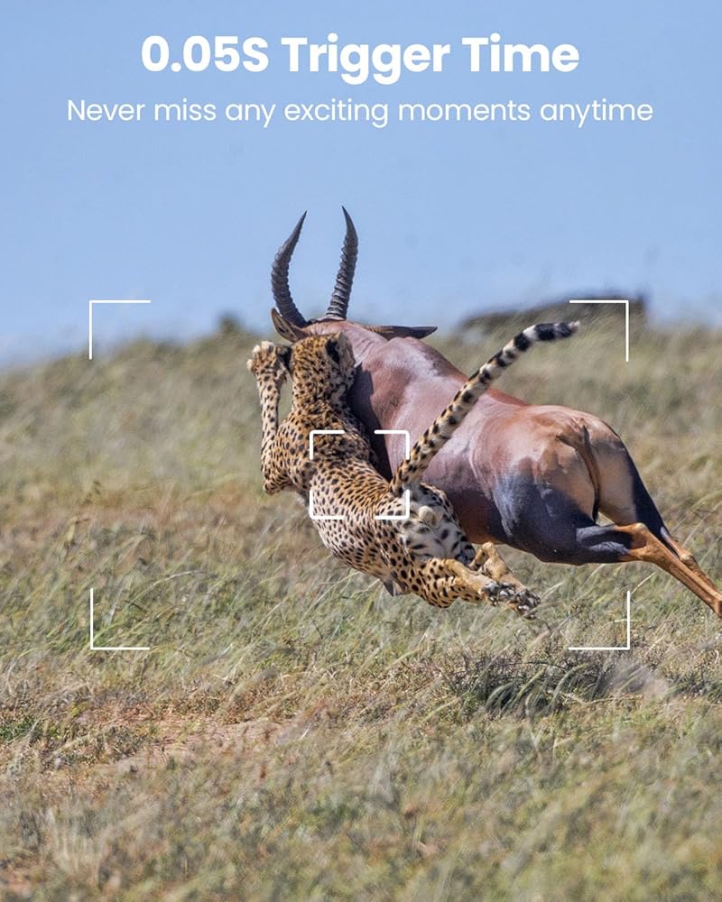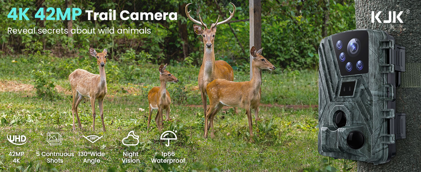 كاميرا تريل، 42 ميجابكسل 4 كيه 0.05 ثانية، كاميرا ألعاب مع رؤية ليلية IP66 مقاومة للماء 100 قدم 130 درجة زاوية واسعة لمراقبة الحياة البرية