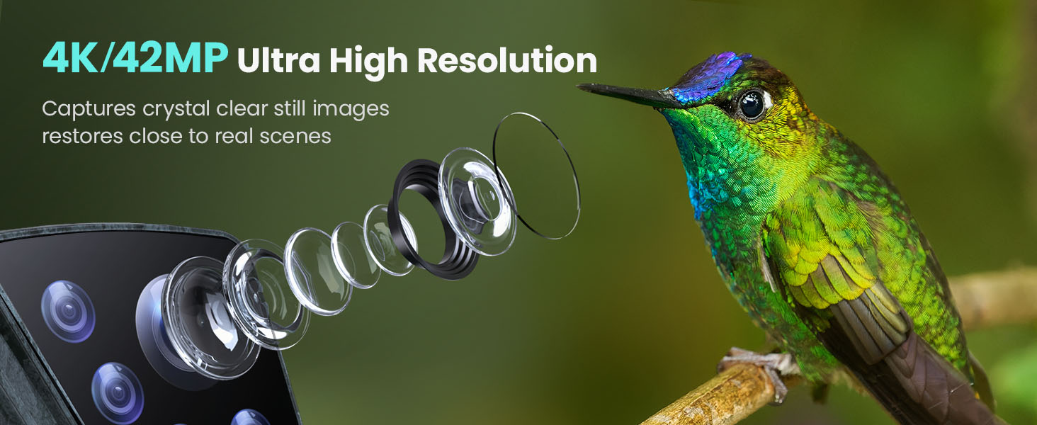 • مقاطع فيديو 4K وصور بدقة 42 ميجابكسل: بفضل مستشعر الصور المتطور والعدسة الضوئية المميزة لضوء النجوم، توفر كاميرا المسار هذه مقاطع فيديو فائقة الوضوح بدقة 4K مع صوت وصور واضحة بدقة 42 ميجابكسل في النهار أو الإضاءة المنخفضة أو الظلام التام. ، والنتيجة هي صور ليلية واضحة ونقية بدون أي تحبب أو ضبابية، في حين أن الصور النهارية غنية بالألوان والوضوح.