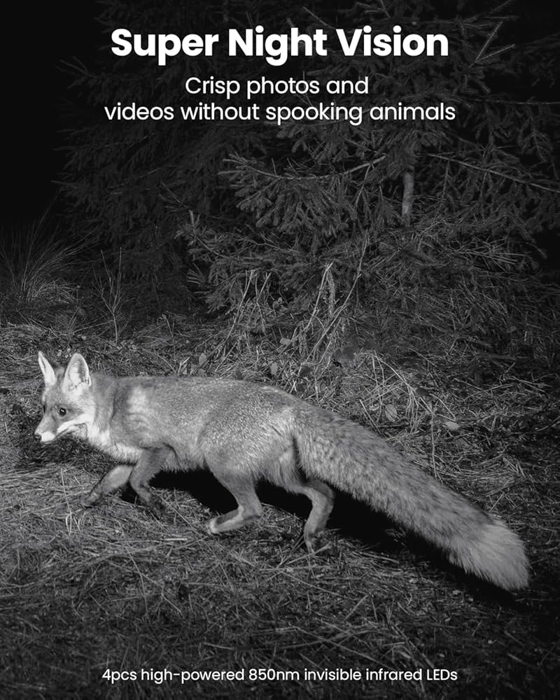 • 【رؤية ليلية متقدمة ولا تحتوي على مصابيح LED متوهجة بالأشعة تحت الحمراء】تتميز كاميرا الألعاب الخاصة بنا بتقنية الأشعة تحت الحمراء 940 نانومتر و4 قطع قوية من مصابيح LED بالأشعة تحت الحمراء غير المتوهجة التي تحافظ على كاميرا المسار غير محسوسة في الليل، وتكنولوجيا الإضاءة الذكية بالأشعة تحت الحمراء، وعدسة بصرية متقدمة، ومستشعر الصورة مدمج لضمان تسجيل لحظة نشاط الحيوان في الليل بوضوح، توفر رؤية ليلية رائعة تصل إلى 100 قدم.