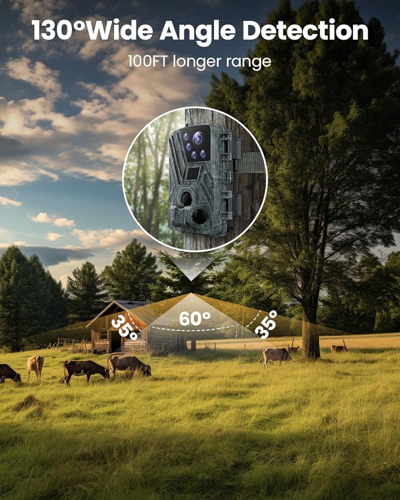 • 【وقت تشغيل سريع 0.05 ثانية وزاوية عريضة 130 درجة】تم تجهيز كاميرا ألعاب KJK بثلاثة مستشعرات PIR حساسة تهدف إلى اتجاهات متعارضة للإنشاء، جنبًا إلى جنب مع اختيارات من 1 إلى 5 لقطات، مما يعني أنك لن تفوتك أبدًا كل لحظة بتفاصيل واضحة. زاوية واسعة 130 درجة لتمنحك رؤية ميدانية واسعة.