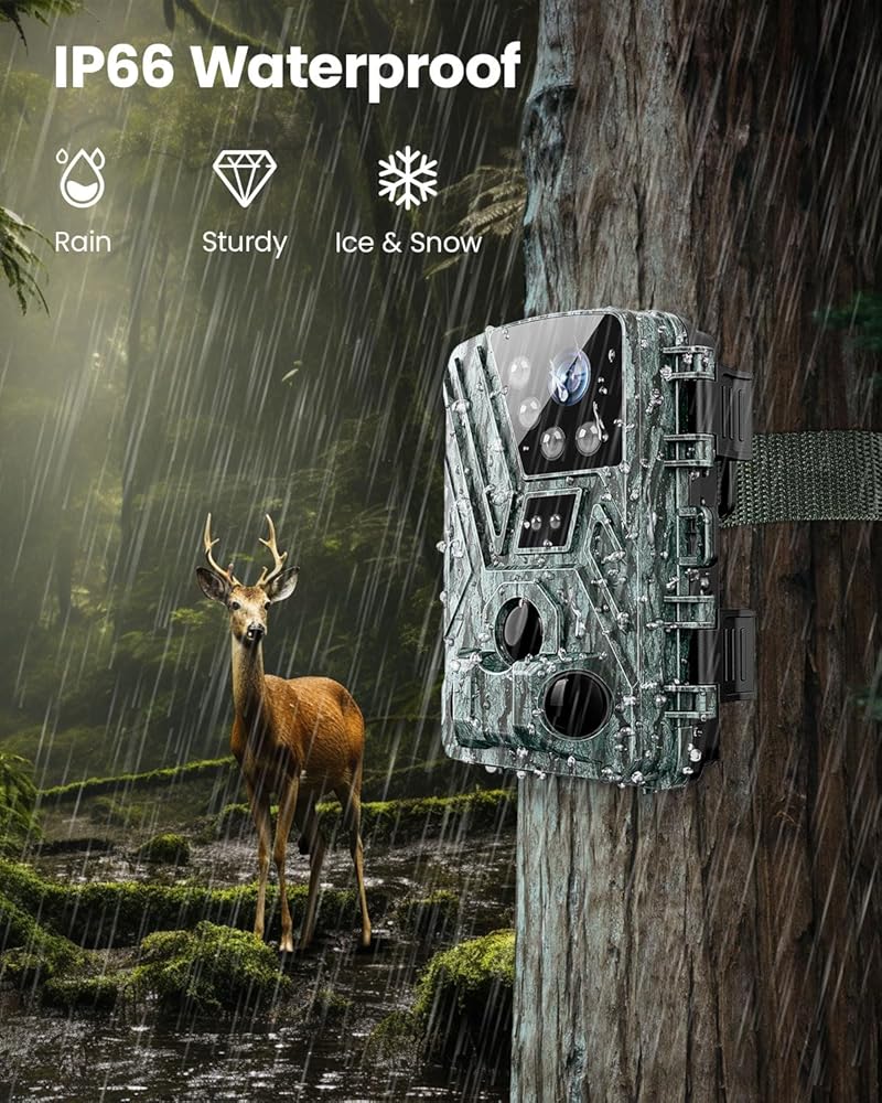 • 【مقاومة للماء IP66】كاميرا المسار الخاصة بنا مقاومة للماء والغبار IP66، بفضل تصميم الغطاء المدمج والمتين والحلقة المطاطية عالية الجودة، مما يضمن أن تعمل بشكل طبيعي من -22 درجة فهرنهايت إلى 158 درجة فهرنهايت، ويمكن استخدام الجودة الممتازة في مجموعة متنوعة. من البيئات، مثل الصحارى والغابات المطيرة وما إلى ذلك، تمثل هدية ممتازة لعشاق الحياة البرية والصيادين المتحمسين وعشاق الهواء الطلق.