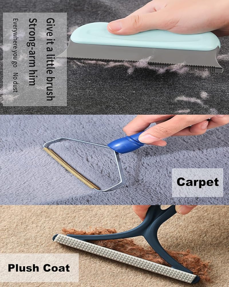 【تعليمات مناسبة】 أمسك مكشطة الوبر المعدنية بزاوية 45 درجة على السجاد وأشجار القطط وأسرّة الحيوانات الأليفة والسجاد وسجاد السلالم لإزالة أعمق الشعر المدمج حتى لو لم تلاحظ وجود بقع عمياء على السلالم أو الأرائك. أمسك السراويل والملاءات بزاوية 90 درجة. زاوية 15 درجة مناسبة لسروال قصير. يمكن استخدام مكشطة السجاد القماشية غير الضارة في الديكورات الداخلية للسيارات، والأثاث الجلدي، والأرائك المصنوعة من الجلد السويدي، والسراويل، والأغطية، وأغطية الوسائد، والأرضيات، والمزيد. لا تستخدم على البلوزات!