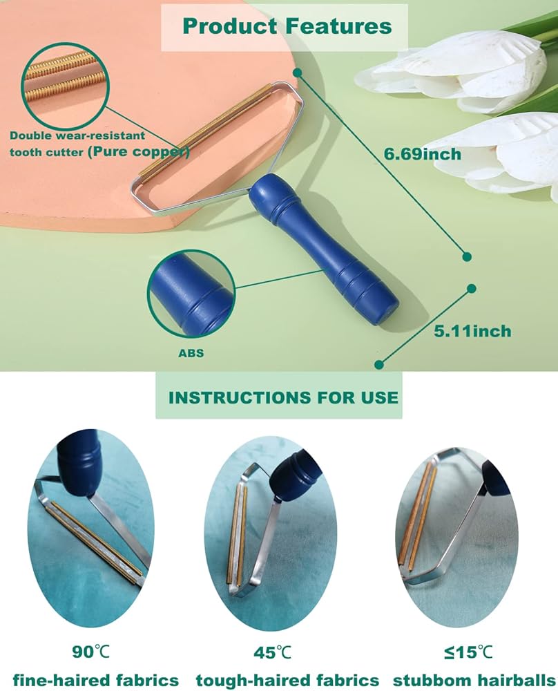 معلومات التغليف: احصل على 3 أنماط جديدة من مزيل الوبر في وقت واحد: ①شفرة نحاسية نقية بمقبض ABS ②تصميم رأس سيليكون على الوجهين (على شكل Y) ③تصميم رأس مسنن مزدوج الصف. أنواع مختلفة من الشفرات مناسبة لأسطح القماش المختلفة، سهلة لإزالة الشعر. تحديث الأقمشة الخاصة بك.