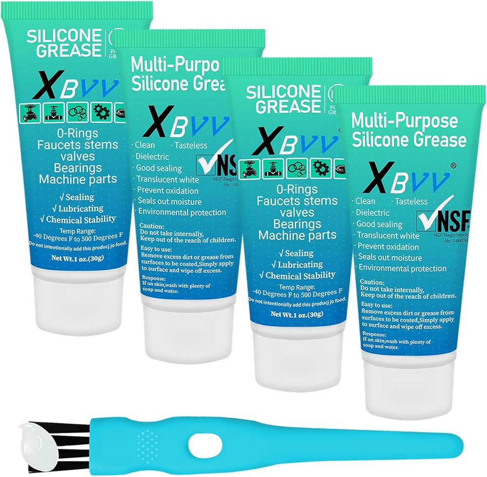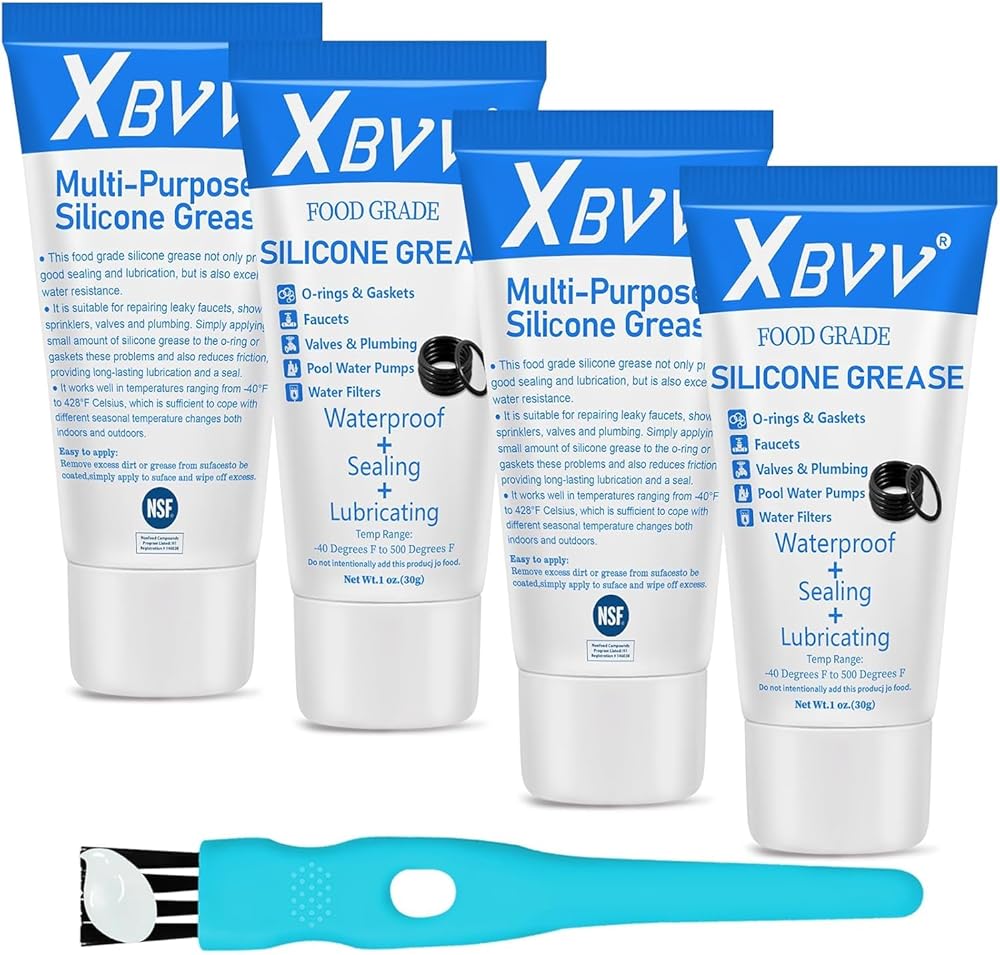 شحم سيليكون من الدرجة الغذائية معتمد من NSF: عديم الرائحة، أبيض شفاف وغير ملوث كيميائيًا لمياه الشرب. مقاومة جيدة لدرجات الحرارة العالية والمنخفضة، يحافظ على تماسكه في درجات حرارة من -40 درجة إلى 400 درجة فهرنهايت، بدون تلوين، استخدام نظيف.