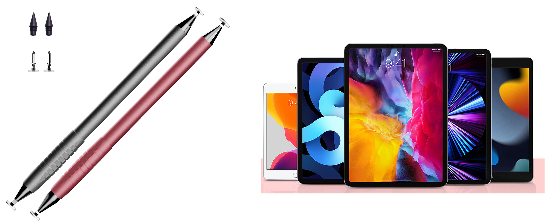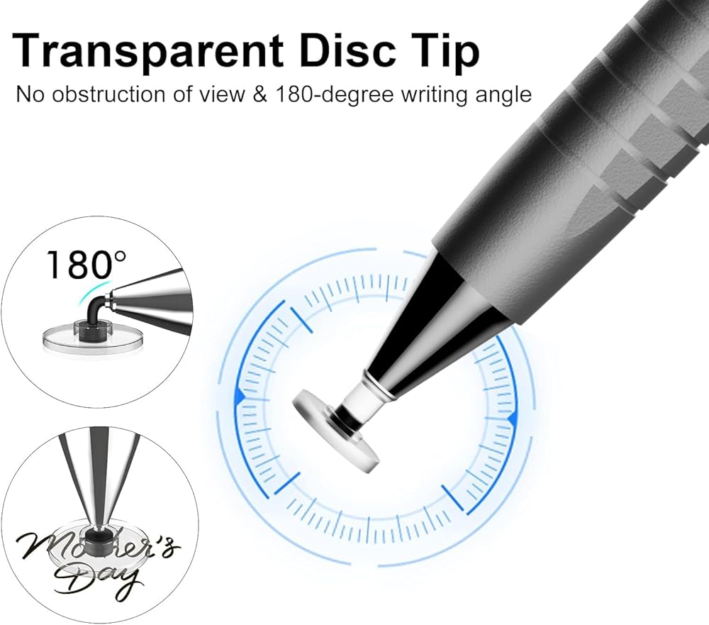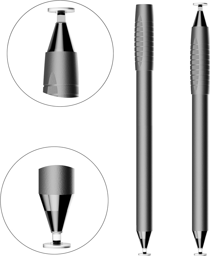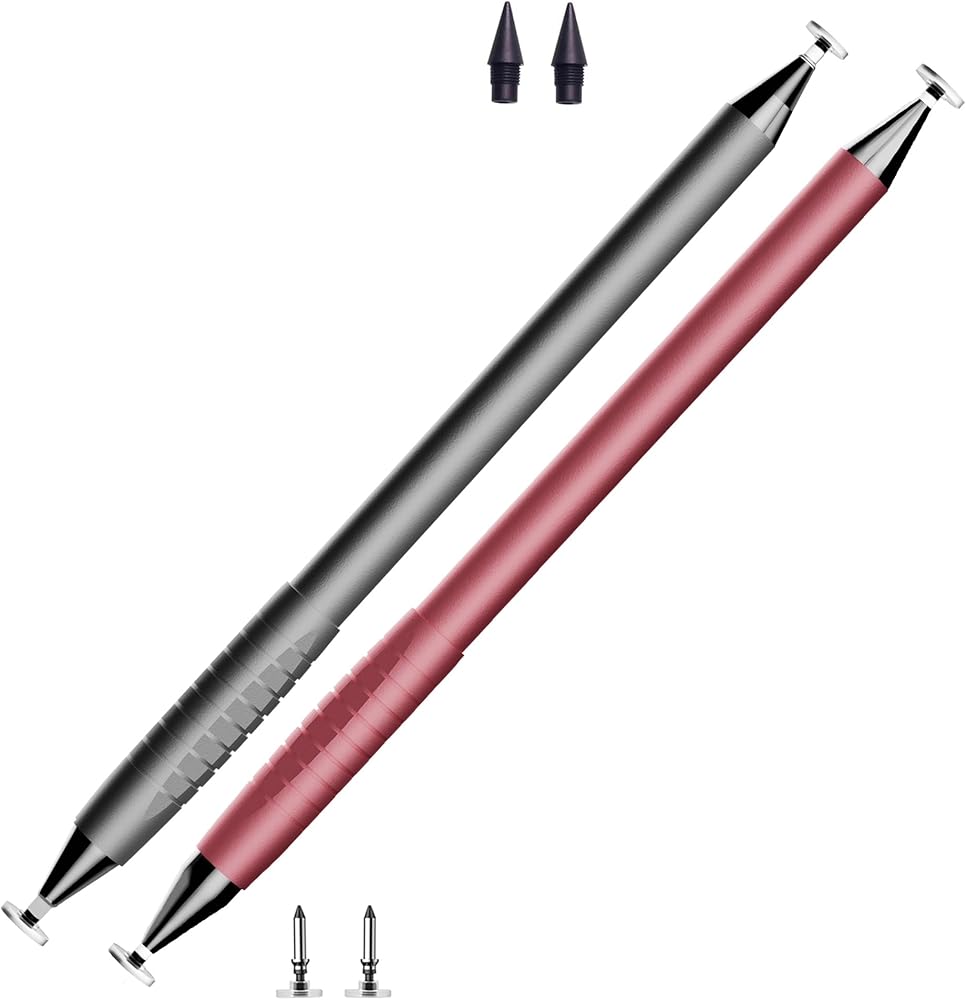 أقلام لمس 2 في 1 لأجهزة iPad، وشاشات اللمس العالمية عالية الحساسية والدقة، قلم ذو طرف سعوي عالي الحساسية لأجهزة Samsung/Galaxy/الكمبيوتر اللوحي/Kindle/الكمبيوتر/FireTablet (عبوة من قطعتين)