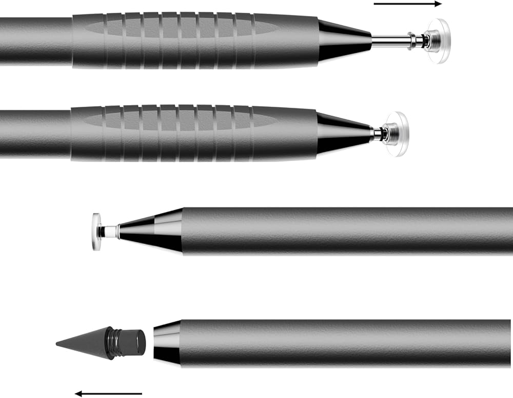 • 【 قلم شفط مغناطيسي】يحتوي هذا القلم على مغناطيس مدمج يمكن ربطه بالهواتف المعدنية والأجهزة اللوحية. اسحب الغطاء الواقي لقلم شاشة اللمس لحماية طرف قلم اللمس الخاص بك. يحتوي الغطاء المنزلق للقلم العالمي على مغناطيسي الجذب، قم بالتمرير لسماع الصوت "PA,PA".