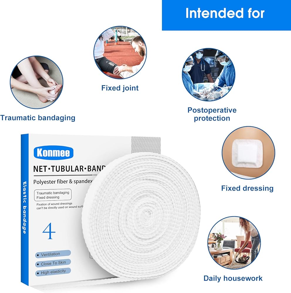 ضمادة أنبوبية مرنة لتضميد الجروح، ضمادة شاش مرنة قابلة للتمدد، مقاس 4 لراحة اليد والمعصم والساعد