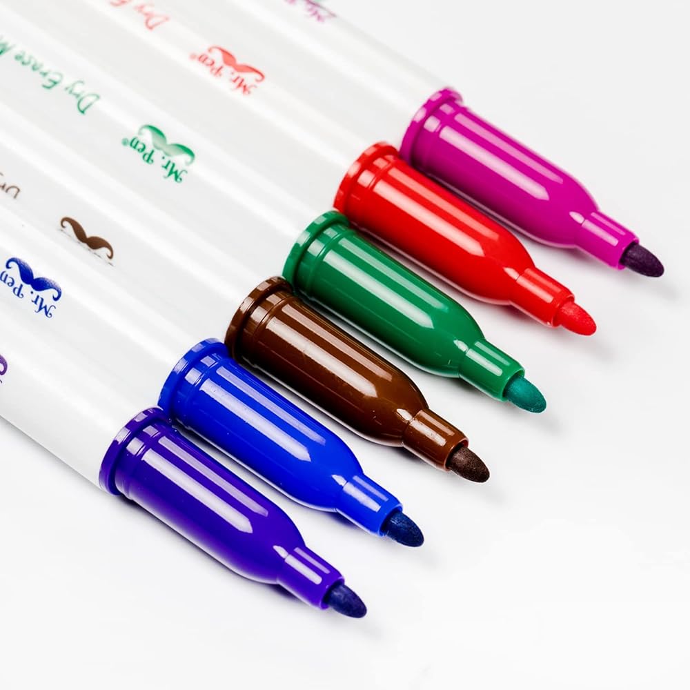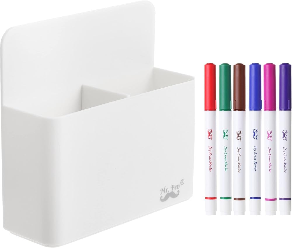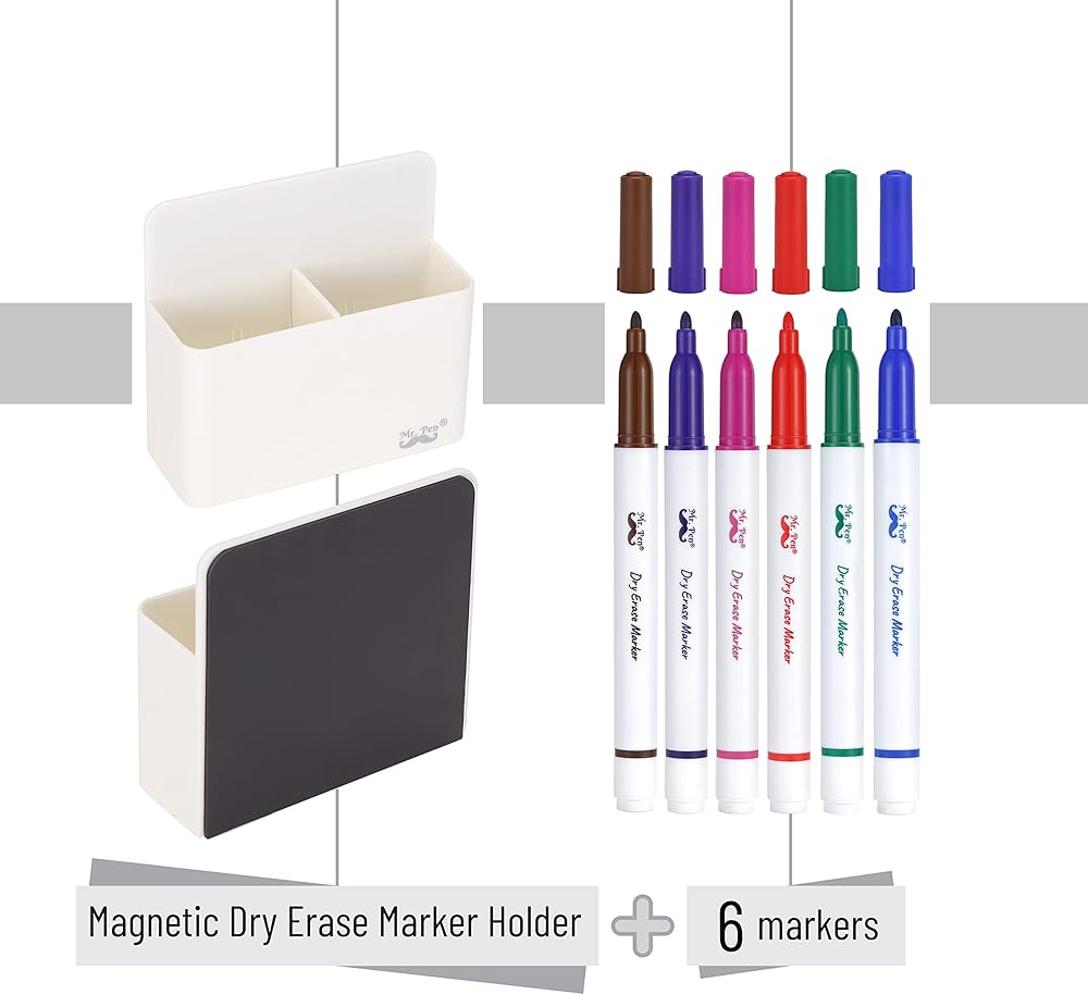 السيد. Pen- حامل قلم التحديد المغناطيسي، أبيض، حامل قلم التحديد الجاف المغناطيسي مع 6 أقلام تلوين ملونة، حامل قلم السبورة البيضاء، منظم السبورة البيضاء، منظم لوحة المسح الجاف، حامل المسح الجاف