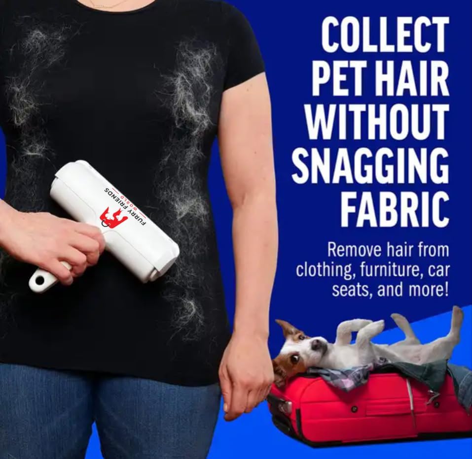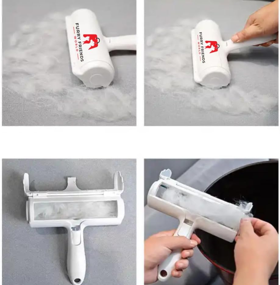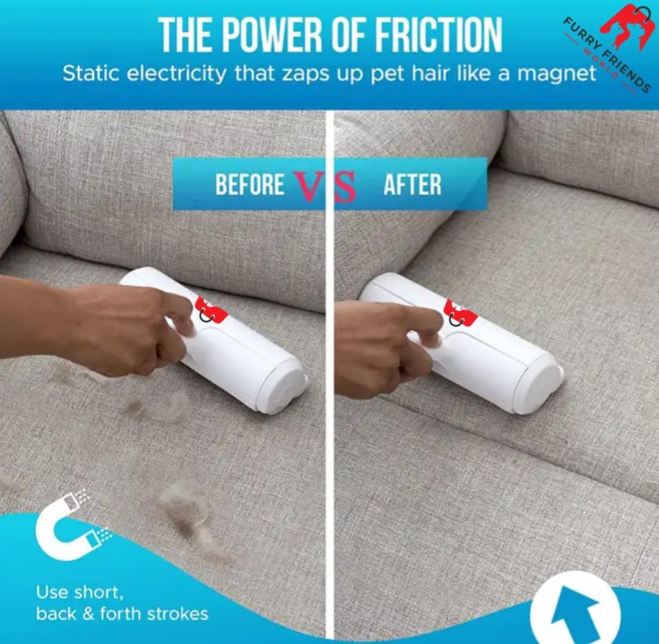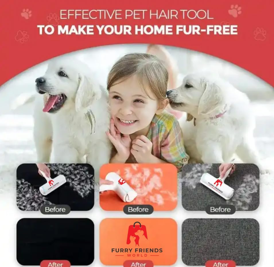 Say goodbye to pesky pet hair with the ultimate pet hair roller! Unlike traditional lint rollers, this reusable marvel is a game-changer for dog and cat hair removal. Effortlessly tackle fur on furniture, rugs, and more. Whether it's your couch, car, or carpet, this essential tool is a must-have for pet owners and lovers alike. Pet Hair Removal By Furry Friends World Offers Strong, Durable and Reusable Lint Roller for Cat and Dog Hair Remover. ON Furniture, Couch, Carpet, Clothing and Bedding. Its Portable and Designed For Multi-Surface Fur Removal.