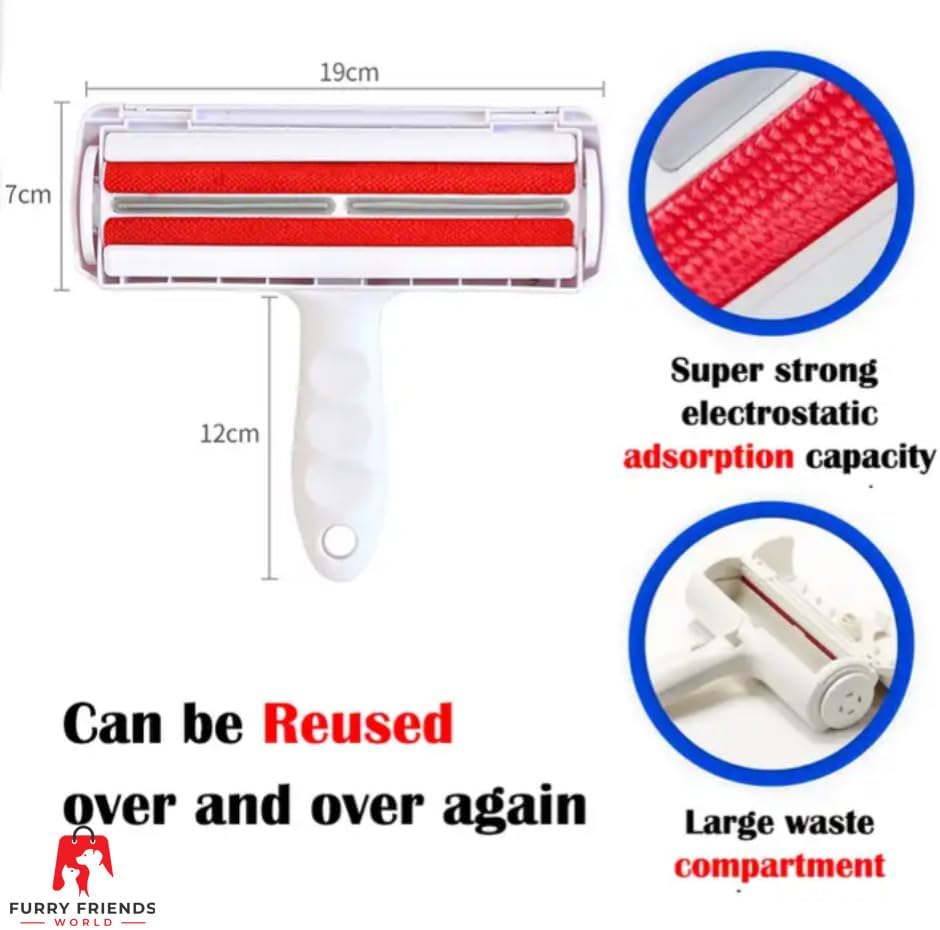 Crafted from highquality nylon for superior performance, the FURRY FRIENDS WOLRD pet hair roller stands as the ultimate solution for effective dog and cat hair removal.