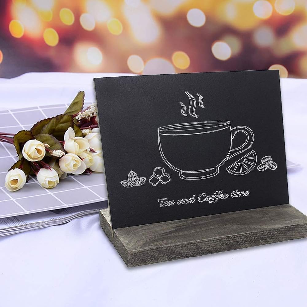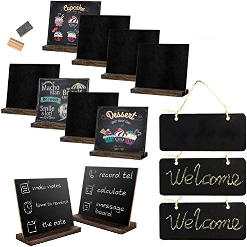 5 × 6 بوصات لافتات سبورة صغيرة، علامات سبورة خشبية عتيقة على سطح الطاولة مع قطعتين ممحاة سبورة و3 قطع لافتات تعليق سبورة، مجموعة من 10 مثالية لحفلات الزفاف، وأرقام الطاولات، ولوحات الرسائل، وديكور الحفلات