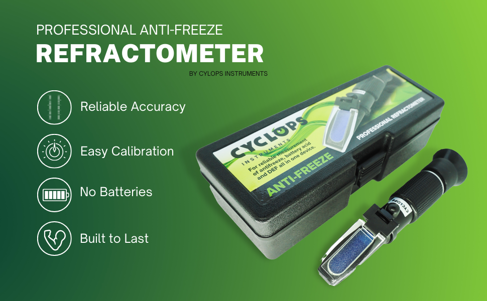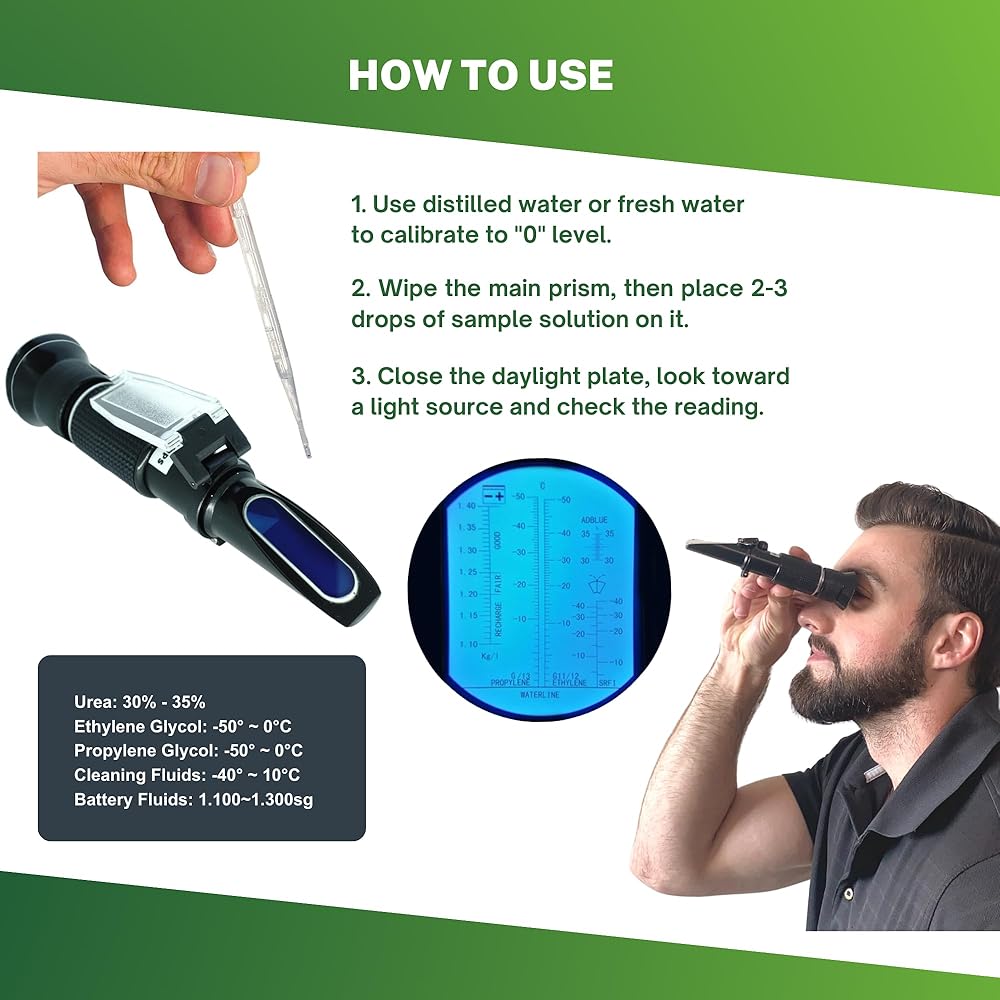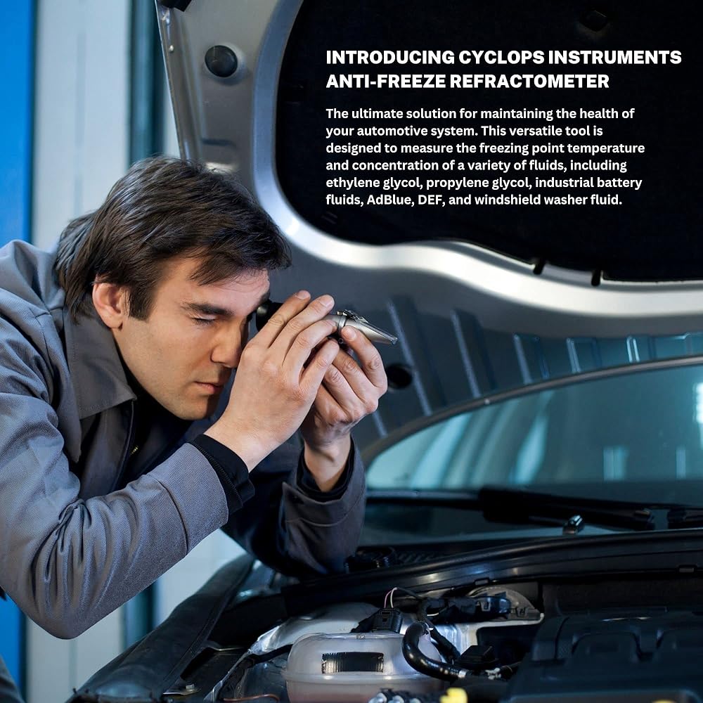 مجموعة واسعة من التطبيقات: لا يقتصر مقياس الانكسار الخاص بنا على المحاليل المضادة للتجمد. ويمكن استخدامه أيضًا لقياس ومراقبة تركيز السوائل الصناعية الأخرى مثل المبردات المعتمدة على الجليكول، وإلكتروليتات البطارية، وسوائل غسيل الزجاج الأمامي.