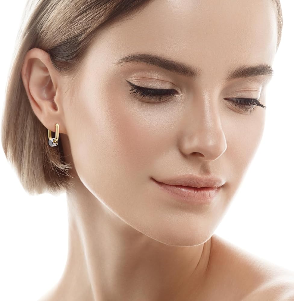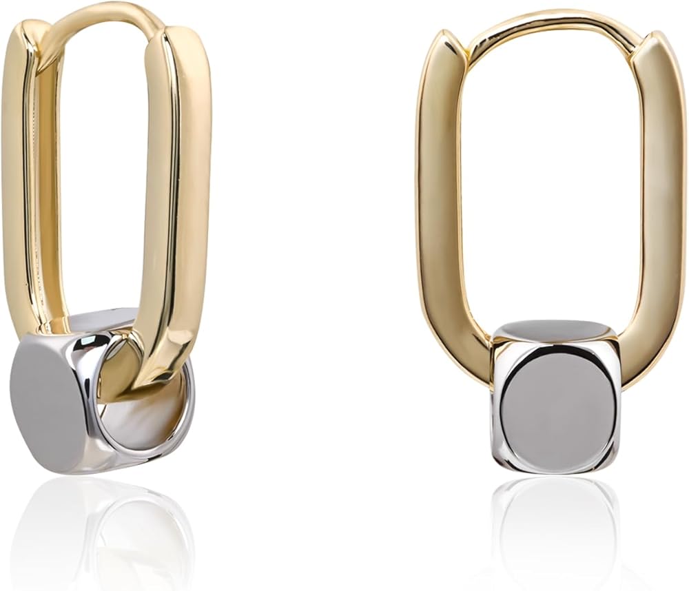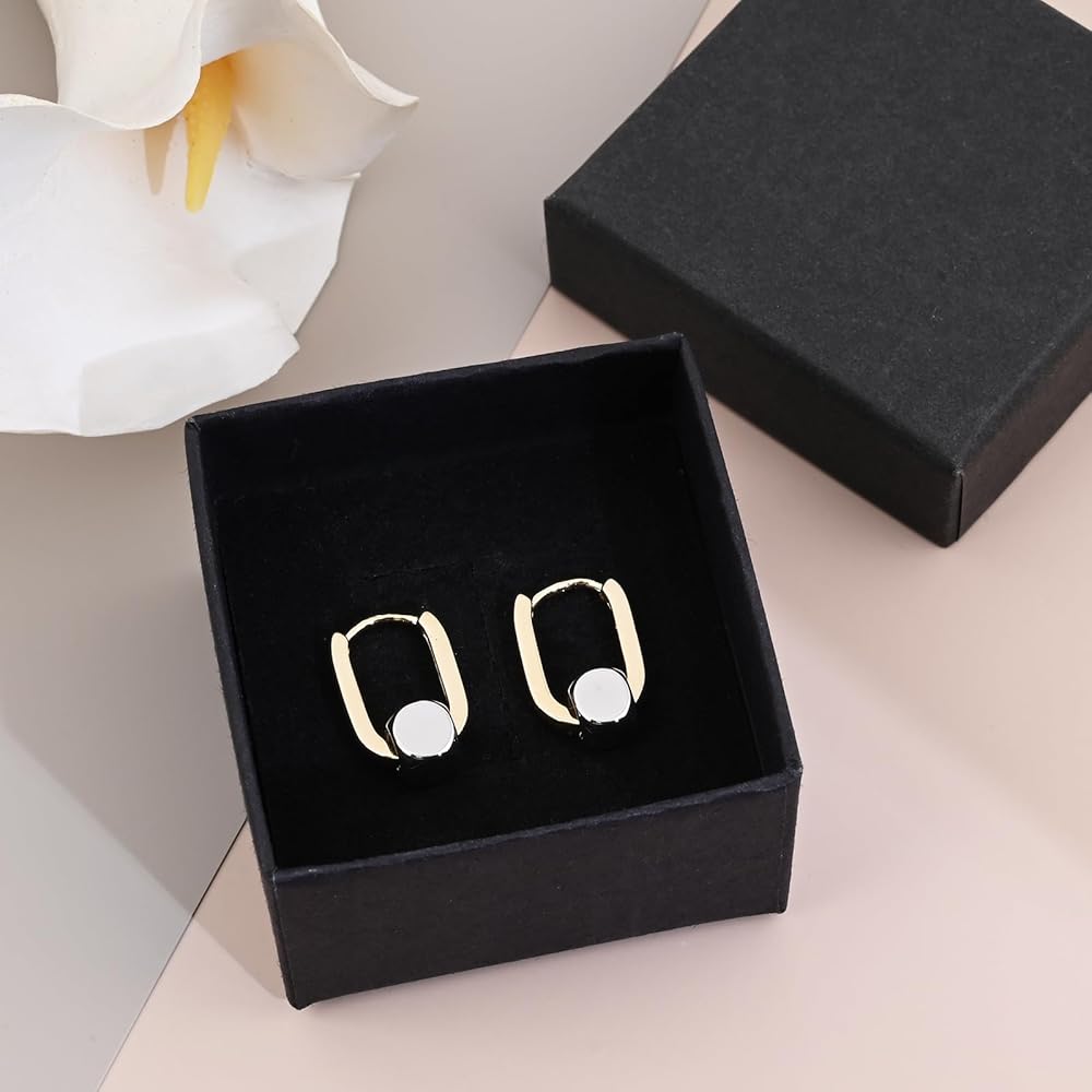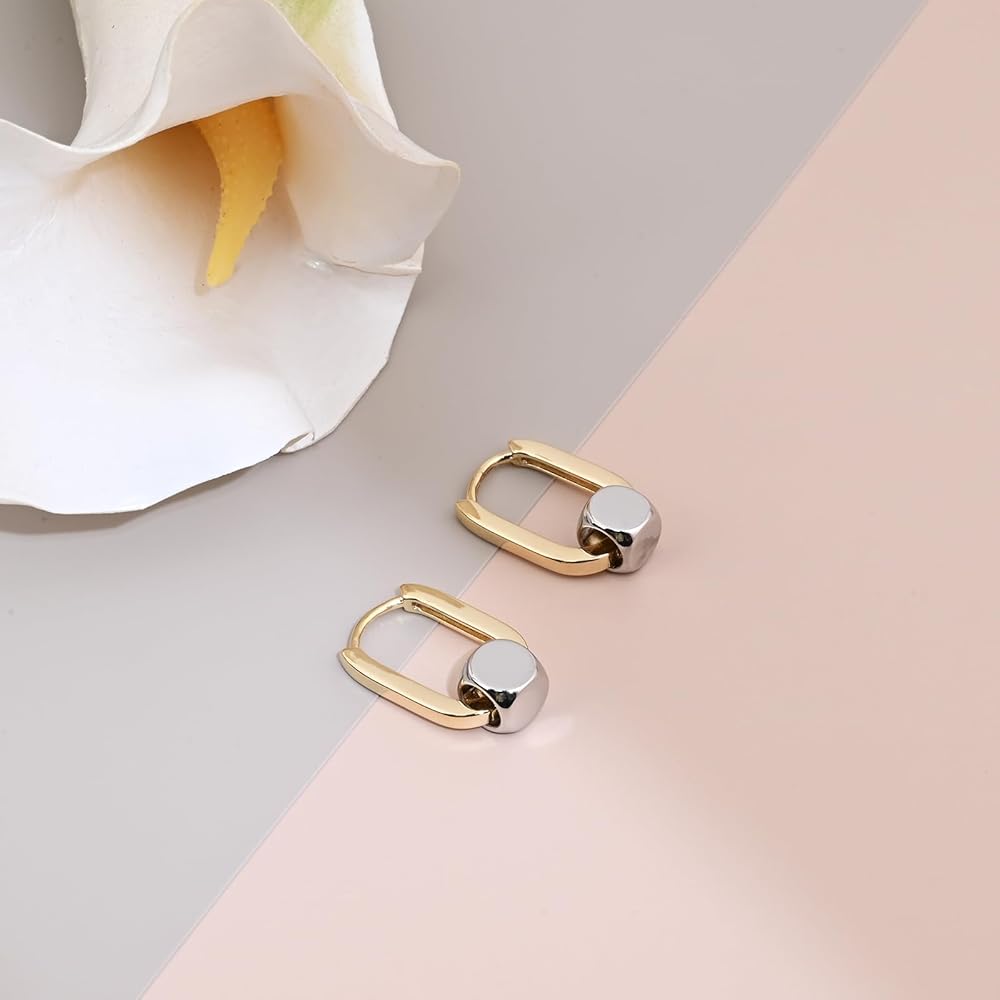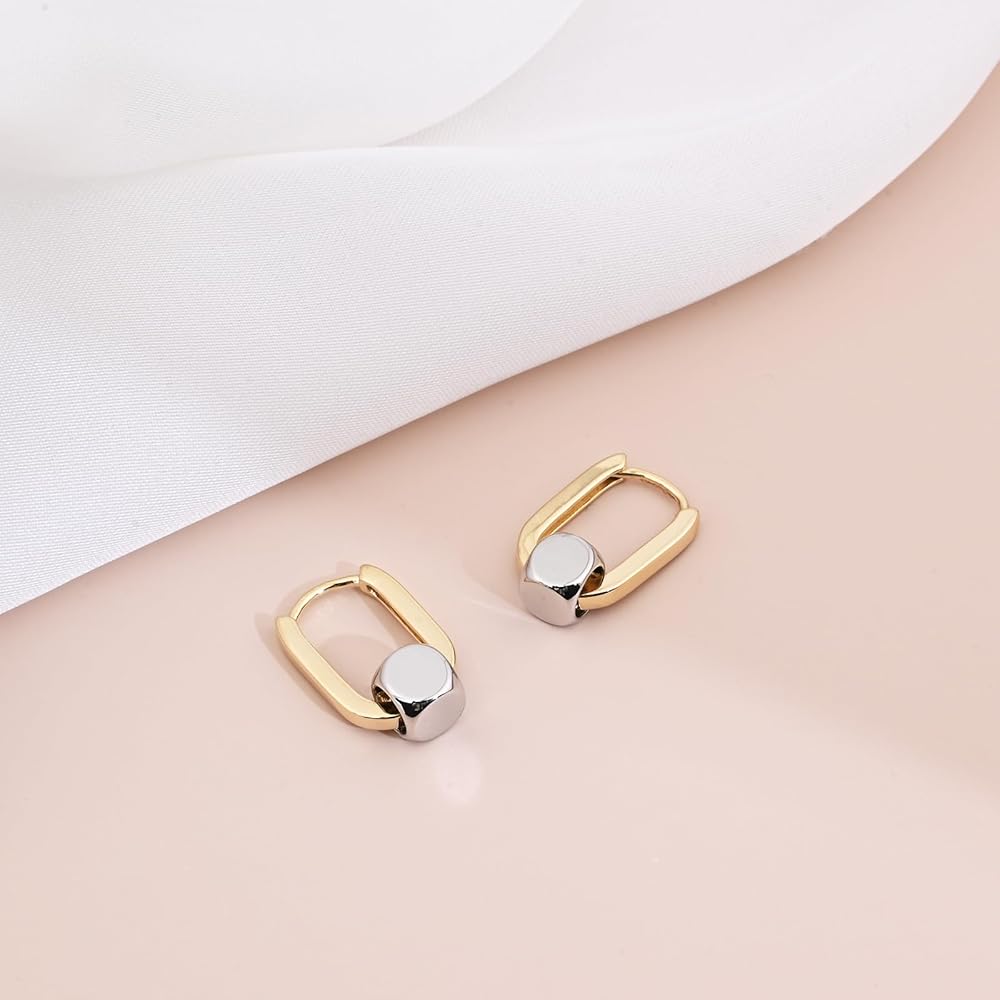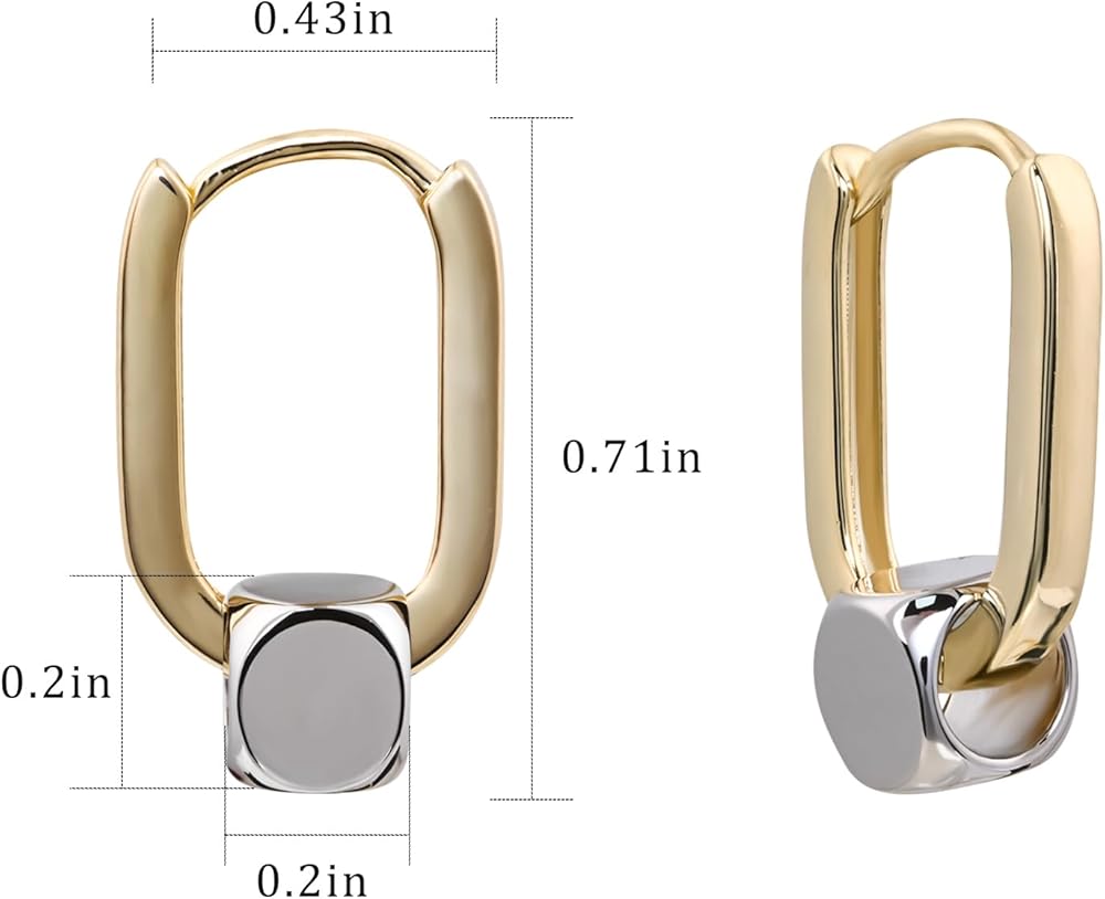 [Unique Design] These gold hoop earrings combine square and oval shapes, setting it apart from ordinary styles. Geometric earrings take on a more artistic appearance, thanks to this unique design. The overall golden color exudes nobility and power. Silver movable blocks hang as gentle and elegant embellishments.