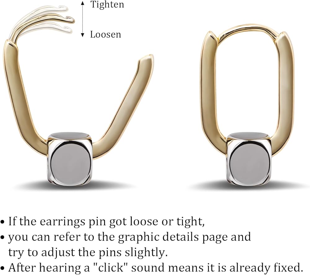[Suitable Size and Material] These gold oval earrings measure 0.4*0.7 inches, with the hanging silver square at 0.2*0.2 inches. It is small and lightweight, ensuring it won't be burdensome to wear. Crafted from sterling silver and 14K gold materials, the entire earring is resistant to oxidation and fading, making it hypoallergenic for the skin.
