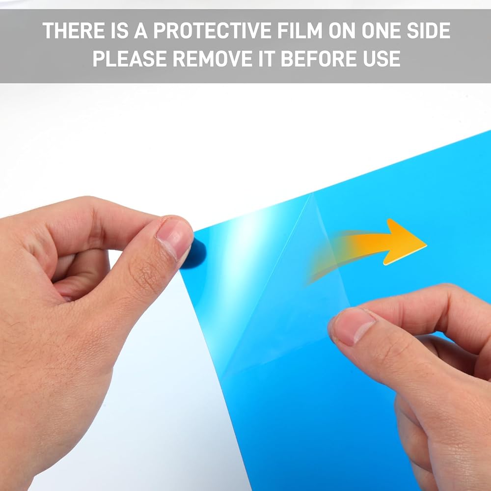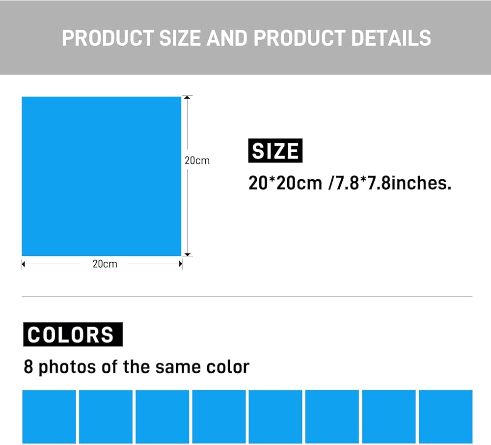 Colored overlays size: each color film sheet is 7.8 x 7.8 inches in dimension, in transparent red color, each is covered with a protective film to avoid being scratched, easy to peel off