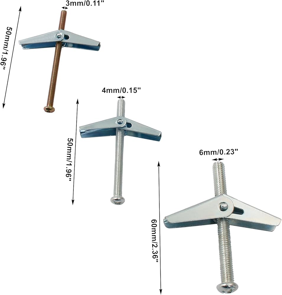 • Wide Application: Toggle bolt and wing nut set is suitable for bookshelves, hanging cabinets, sinks, curtain chutes, bookshelf chutes, cable trenches, water heaters and coat racks, etc.