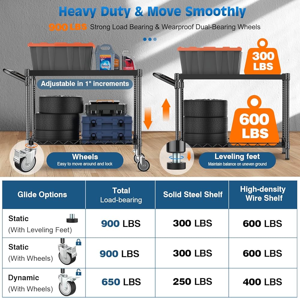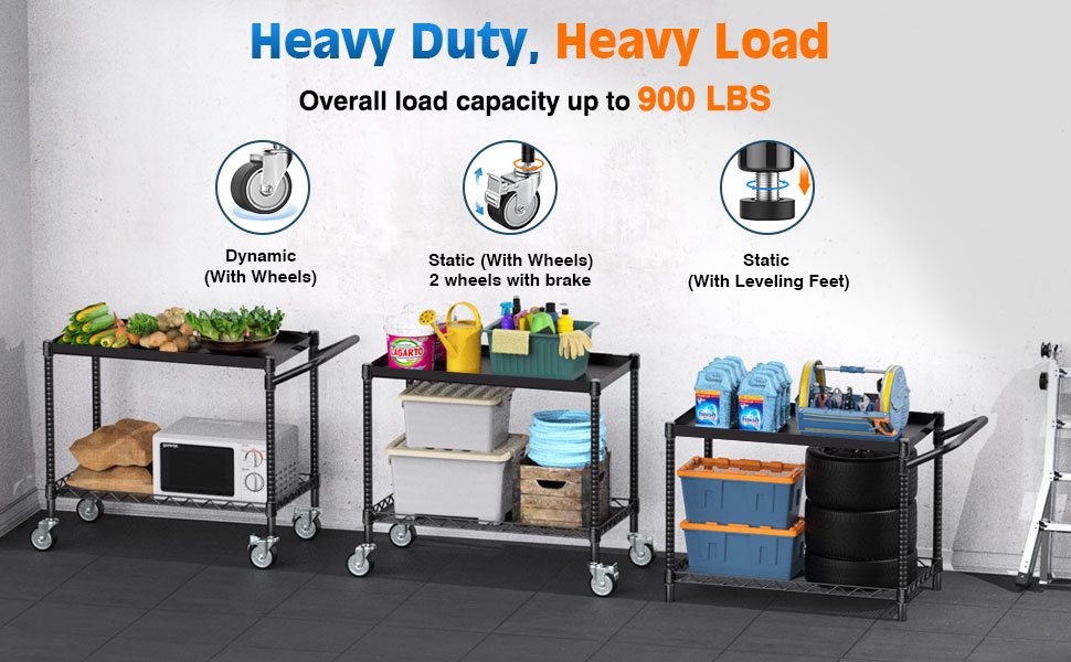 • 【عربة أدوات شديدة التحمل】*سعة تحميل ثابتة (مع أقدام أو عجلات مستوية): الطبقة الأولى من الرف الفولاذي الصلب يمكن أن تتحمل 300 رطل، والطبقة الثانية من رف السلك عالي الكثافة يمكن أن تتحمل 600 رطل، سعة الوزن الإجمالي لهذه الدحرجة عربة الأدوات 900 رطل. *سعة الحمل الديناميكي (مع العجلات): الطبقة الأولى من الرف الفولاذي الصلب يمكن أن تتحمل 250 رطلاً، والطبقة الثانية من الرف السلكي عالي الكثافة يمكن أن تتحمل 400 رطلاً، سعة الوزن الإجمالي تصل إلى 650 رطلاً.