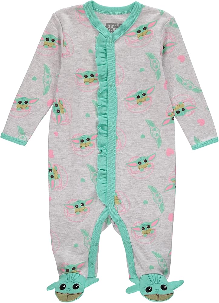 STAR WARS Baby Girls Baby Yoda Pajamas One Piece - Baby Footie Pajamas - Baby Girl Sleepers
