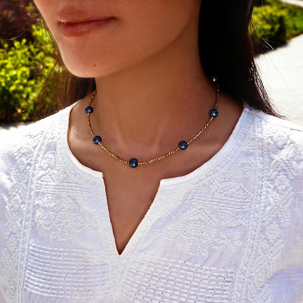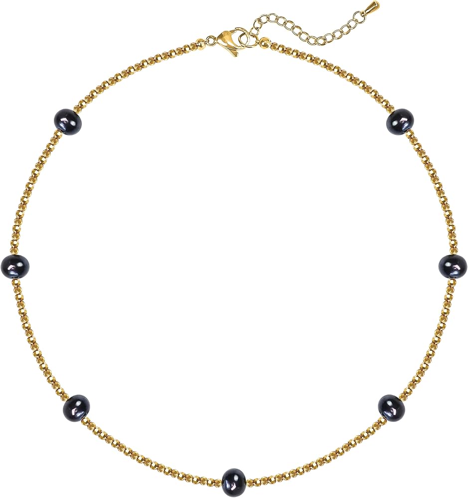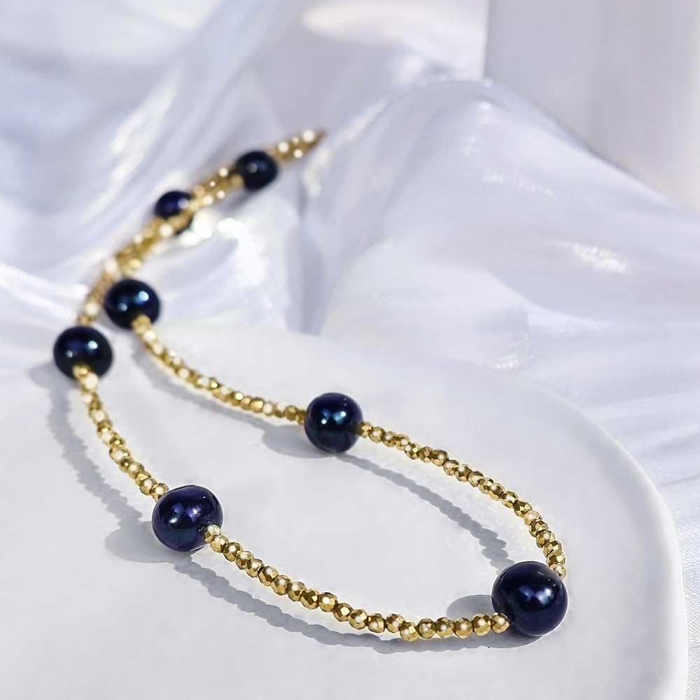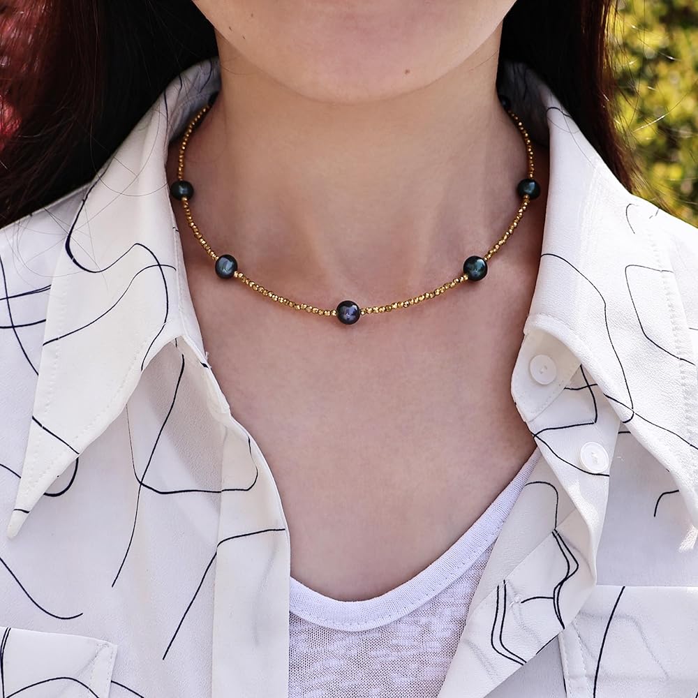 Genuin Real Freshwater Pearl Necklace,Black Peacock Pearl Choker Necklaces for Women,Hematite Gold/Silver Beaded Simple Pearl Necklace,Dainty Adjustable Pearl Jewelry Mother's Valentine Day Gifts