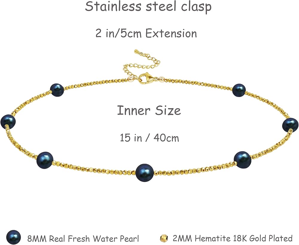 Specification;15'' pearl strand chain plus 2'' extension chain with a Stainless Steel Clasp, Suitable for all women. This cute genuine pearl choker is the perfect piece to add character to your outfit. The choker necklace with pearl can be worn on its own or can easily be layered with other gold jewelry. Especially perfect for summertime!