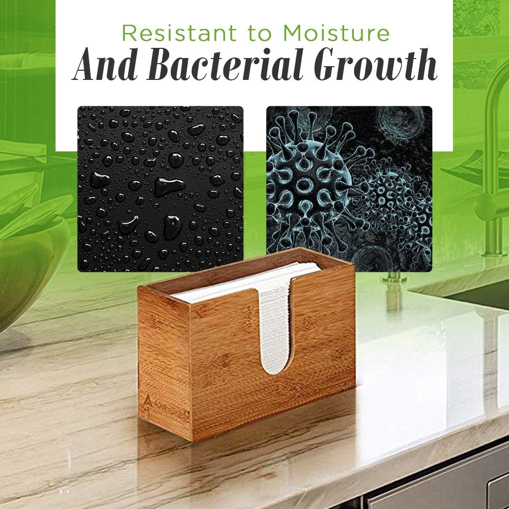 HIGH-QUALITY CONSTRUCTION. This Bamboo Paper Towel Dispenser is skillfully made from sustainable, forest-sourced bamboo to provide long-lasting strength and use. This natural alternative to wood contains no chemicals or formaldehyde, and is resistant to moisture and bacterial growth to hold up to everyday wear and tear.