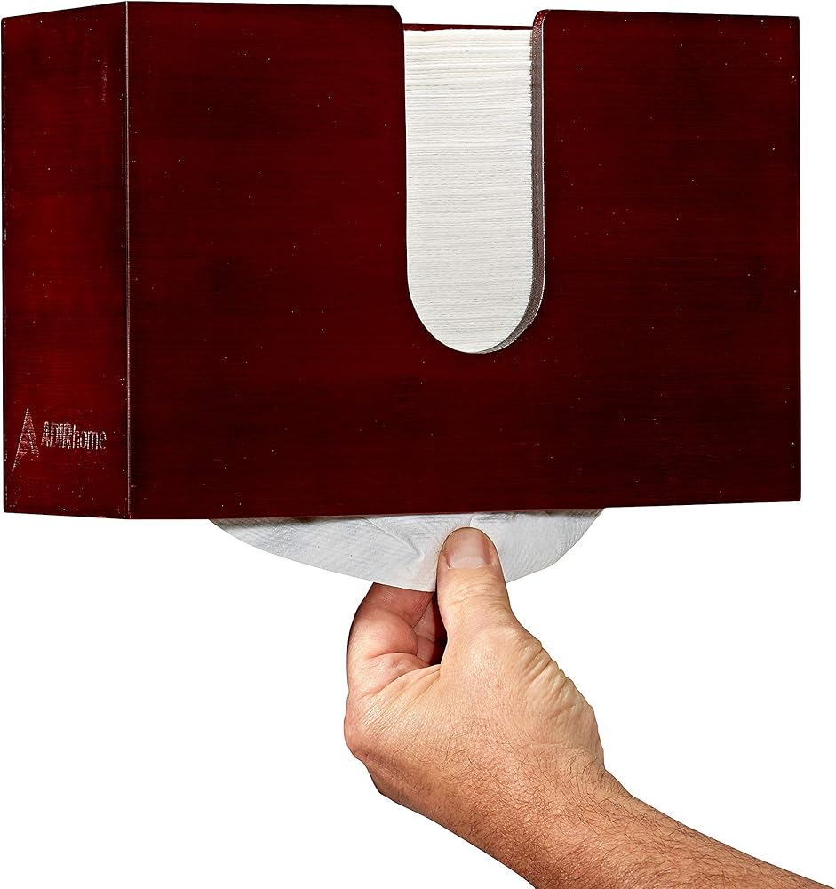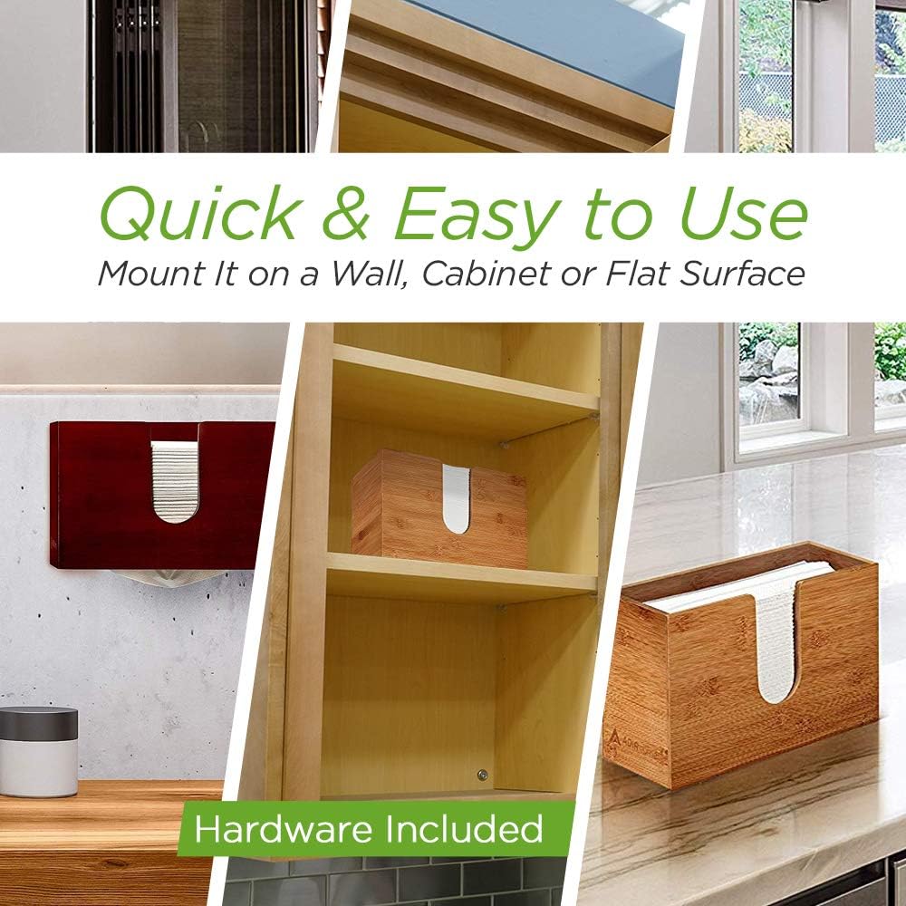 Bamboo Paper Towel Dispenser 4.8" x 11.6" x 7.8" - Wall Mount or Countertop for Multifold Hand Napkins - Bathroom, Kitchen, Home or Commercial Use (Espresso)