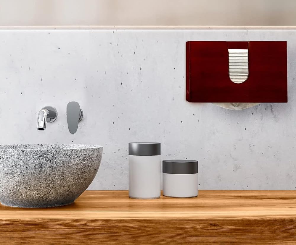 ATTRACTIVE ACCESSORY. Available in beautifully finished natural or espresso bamboo, the AdirHome is an attractive alternative to those mundane-looking paper towel dispensers. Place it in a bathroom, kitchen, garage, workroom, restaurant or club and make a bold statement regarding your good taste.