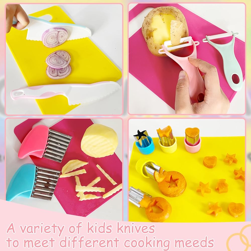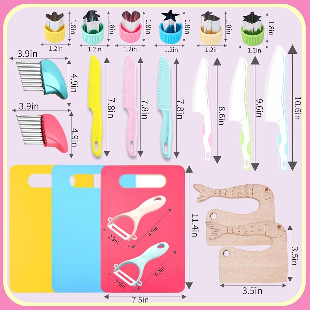 🍉【مجموعات مزدوجة من سكاكين المطبخ للأطفال للطهاة الصغار】مجموعة لوح التقطيع والسكاكين للأطفال / سكاكين القطع الآمنة للأطفال تتضمن قطعتين سكين خشبي للأطفال، 3 قطع مختلفة الحجم / حواف مسننة ملونة، سكاكين للأطفال الصغار، قطعتين من سكين الطبخ، قطعتين من البطاطس. سكينة تقطيع، 4 * أشكال لتقطيع الفاكهة، 2 * مقشرة على شكل حرف Y، 2 * لوح تقطيع. مجموعة متنوعة من سكاكين الأطفال الصغار يمكن أن تزيد من متعة تصميم مجموعات المطبخ المزدوجة للأطفال، وأداء عالي التكلفة، ومناسبة للطهي مع لعب الأخوة/الأخوات وكبار السن.