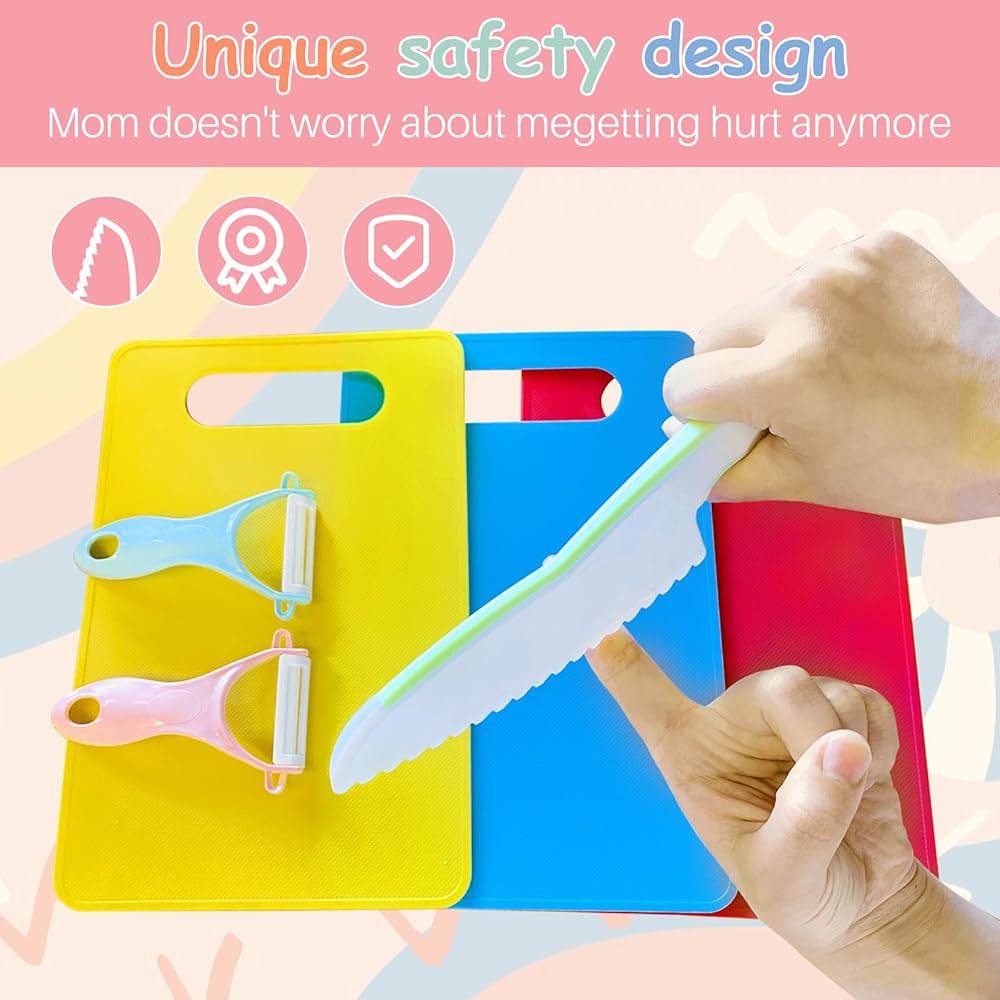 🍏【سكاكين قطع آمنة للأطفال عالية الجودة*مواد آمنة】مجموعة السكاكين الآمنة للأطفال مصنوعة من الخشب عالي الجودة والبولي بروبيلين الآمن غذائيًا. نحن نستخدم أيضًا الفولاذ المقاوم للصدأ عالي الجودة والسيليكون الآمن غذائيًا لضمان أن منتجاتنا آمنة تمامًا. مناسبة للأطفال لتعلم القطع. سكاكين الأطفال هذه غير سامة، ومواد خالية من مادة BPA، وآمنة للاستخدام، وصناعة متقنة، وليس من السهل كسر وتشوه. لوح تقطيع للأطفال ومجموعة سكاكين مناسبة للأطفال.
