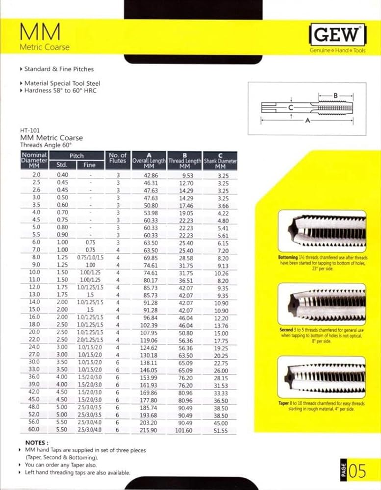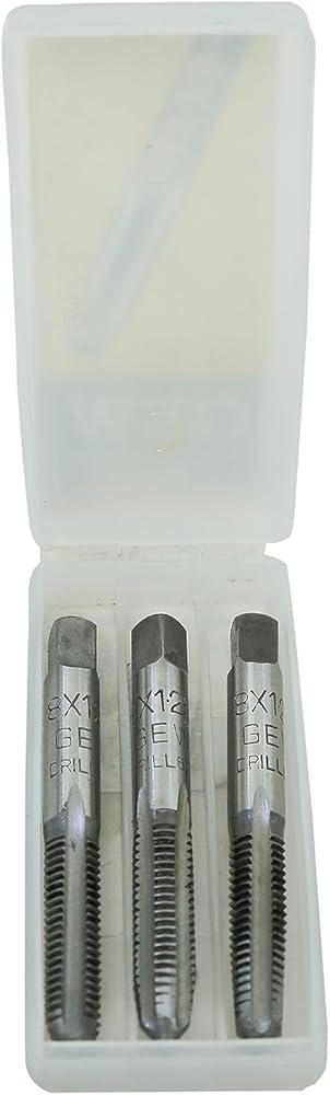 * High Quality Carbon Steel Threading hand taps for re-threading damaged and/or jammed threads * Can Also Be Used To Thread Mild Steel * Set of 3 Pcs Taper, Plug and Bottom - Taper Tap starts the thread square with the workpiece. Plug Tap is generally used in thru holes. Bottom Tap is used at last to generate the thread to the bottom of the hole. * Straight flute tools allow chips to collect in the flutes as they cut and are well suited for most applications in shallow cuts * Uncoated tools feature just the base substrate without any additional treatment or coatings and are suitable for a wide range of applications