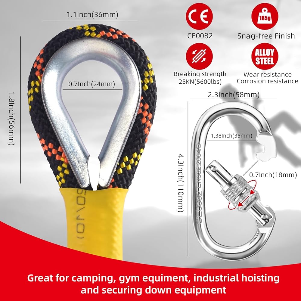 • 【 رأس حبل احترافي 】 يستخدم رأس الحبل تقنية إغلاق القطع الحراري، مع طبقات بوليستر متينة، وأنابيب مقاومة للاهتراء ومضادة للانزلاق، وسطح أملس، يمنع الحبل من التشتت بشكل فعال ويضمن أداء حبل المتسلق.