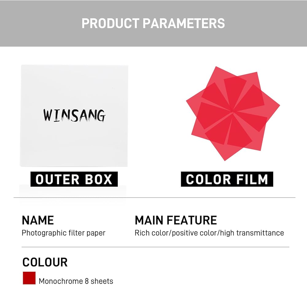 *Packing including: 8 * Gel light filters (one color for 8 pieces)