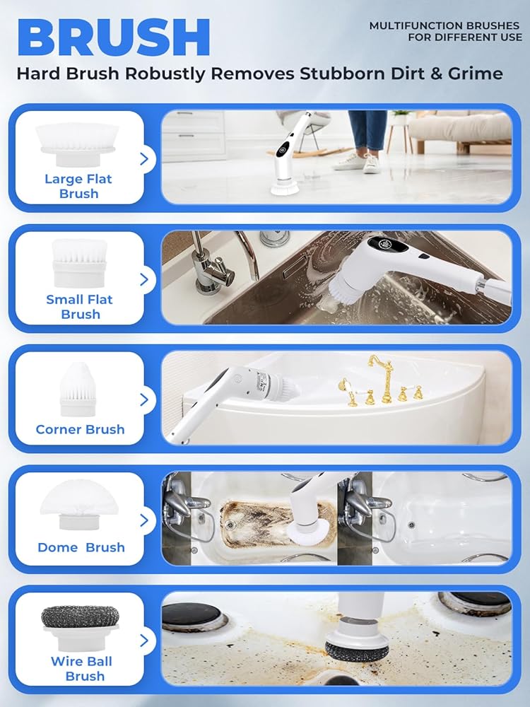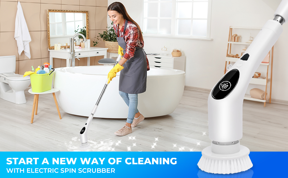 【Easy to Use, Great Gift】This cordless scrubber offers unrestricted mobility without the hassle of a cord, making it simple to use anywhere. Its straightforward operation significantly eases the chore of daily cleaning, making it a thoughtful gift for homemakers, professionals, individuals with arthritis, seniors, and renters alike.