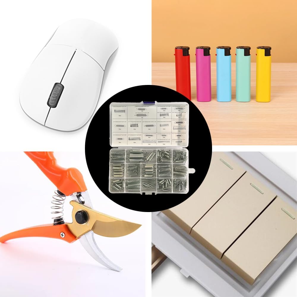 • Functions and uses: commonly used in household appliances, daily tools, medical devices. Repair and maintenance of electronic equipment, office supplies, molds and other products, whether you are a home, store or factory, a box of spring set combination can help you solve many troubles and troubles around you.