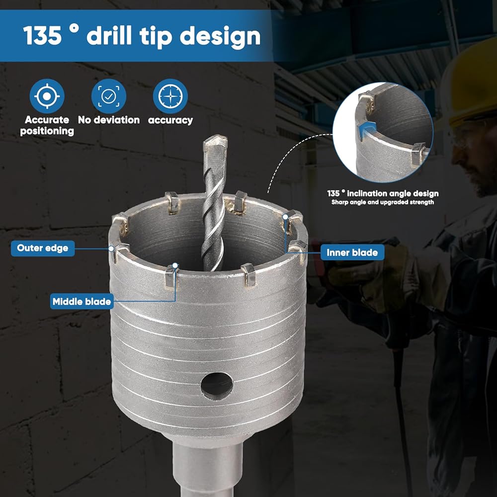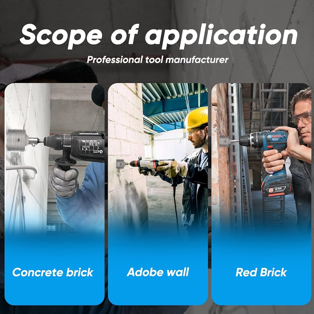 【Premium Material & Design】The concrete hole saw alloy teeth are made of high-strength tungsten cobalt alloy, with sharp and durable cutting edges. They are connected with 50% silver solder, ensuring stable and secure welding, preventing tooth loss, and providing stable operation. They make cutting into walls easier.