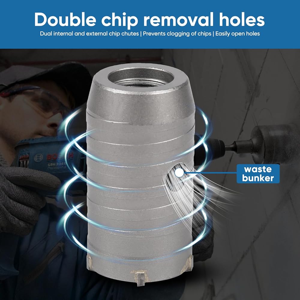 【Dual Groove Design】 The concrete hole saw features a dual chip flutes design, both internally and externally, which effectively prevents debris blockage and ensures smooth drilling operations.