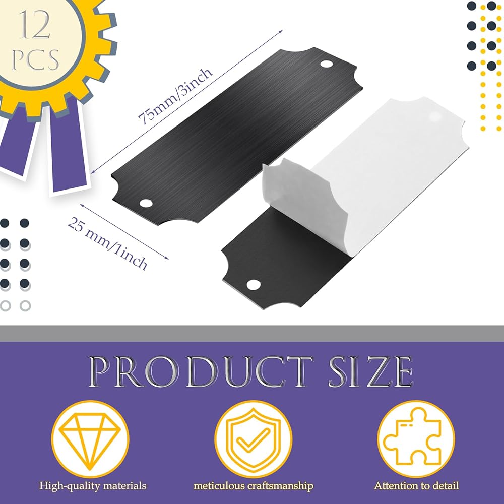 Appropriate Size: the engraved plates with adhesive measure about 1 x 3 inches/ 2.54 x 7.62 cm and 0.02 inch thick, which can be carved deeply; We give allowance for up to 3 lines of inscriptions, with a maximum of 30 characters per line