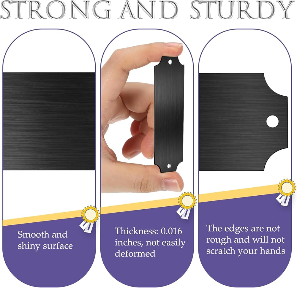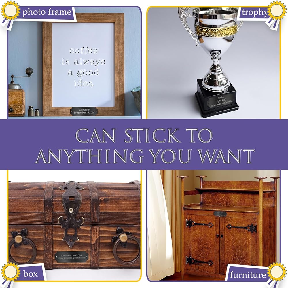 Quality Material: our metal name plate boasts nice quality, made from reliable and strong brushed aluminum; It does not deform or break easily, and their rust-proof nature lends to their durability; Additionally, the surface maintains its luster over time, thanks to the reliable coating that does not easily fade