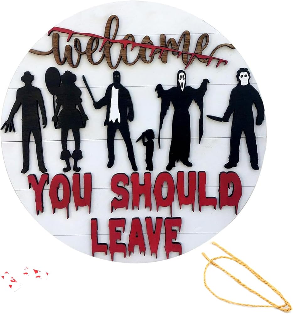 【Great Gift Idea】Made with layered letters and vivid silhouettes for a 3D effect. The wood panels are painted in an antique white finish and the outlines and lettering are hand-painted. Hang on jute twine. Plus, it is an excellent gift for the horror fan in your life.