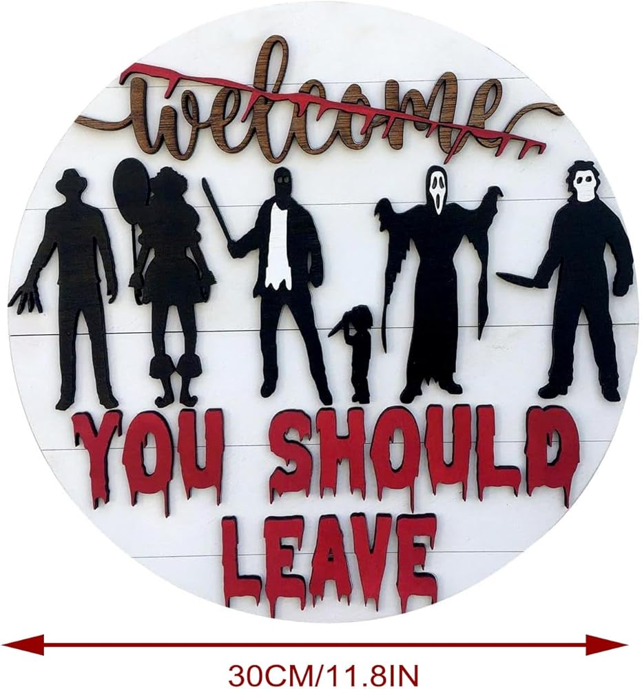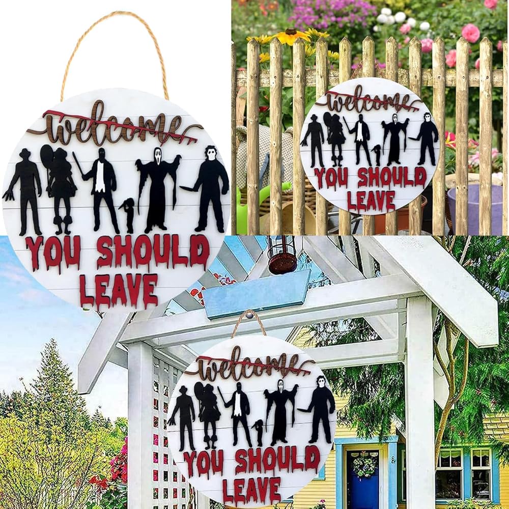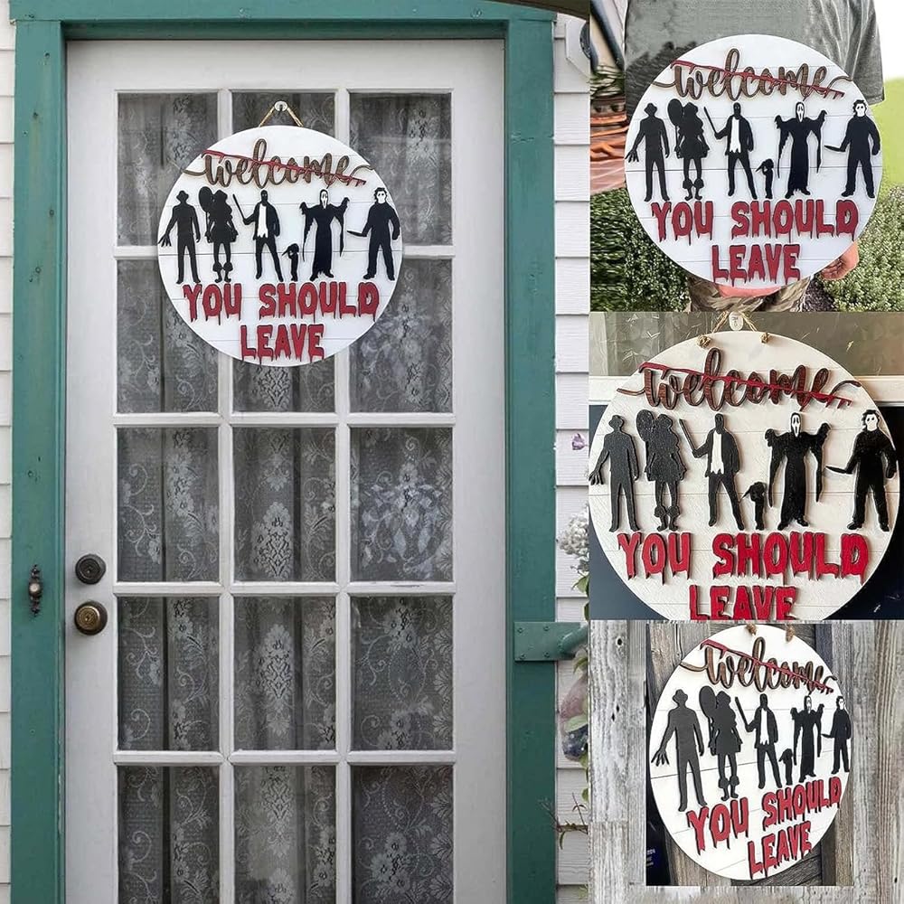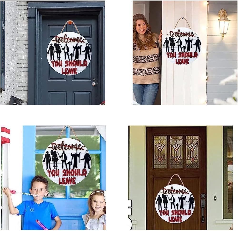 【Multi-scenario Use】This beautiful horror decoration welcome sign front door sign is eye-catching front door panel, back door, room door, window, fireplace, stairs, and porch wall position near the entrance, also suitable for many places, such as coffee shops, restaurant And office buildings will bring you a strong festive atmosphere.