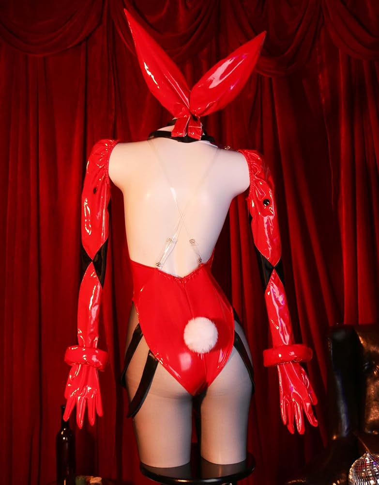 - Included Items: rabbit ear hairpin*2, bowknot collar, bodysuit, arm sleeve*2, eye cover, bracelet 2, stockings, plush rabbit tail, transparent shoulder straps