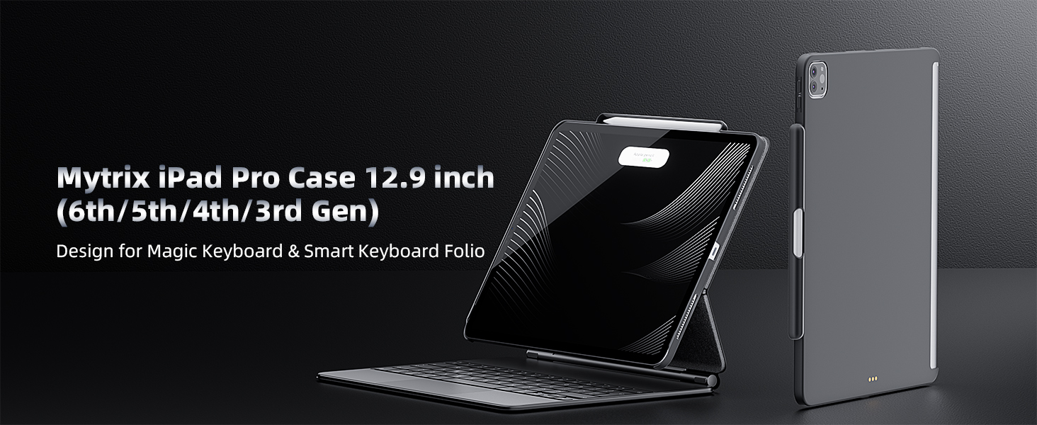 حافظة Mytrix iPad Pro مقاس 12.9 بوصة متوافقة مع لوحة المفاتيح السحرية ولوحة المفاتيح الذكية، غطاء مغناطيسي نحيف مع حامل أقلام لجهاز iPad Pro 12.9 بوصة الجيل الثالث إلى السادس (لوحة المفاتيح غير متضمنة) - أسود