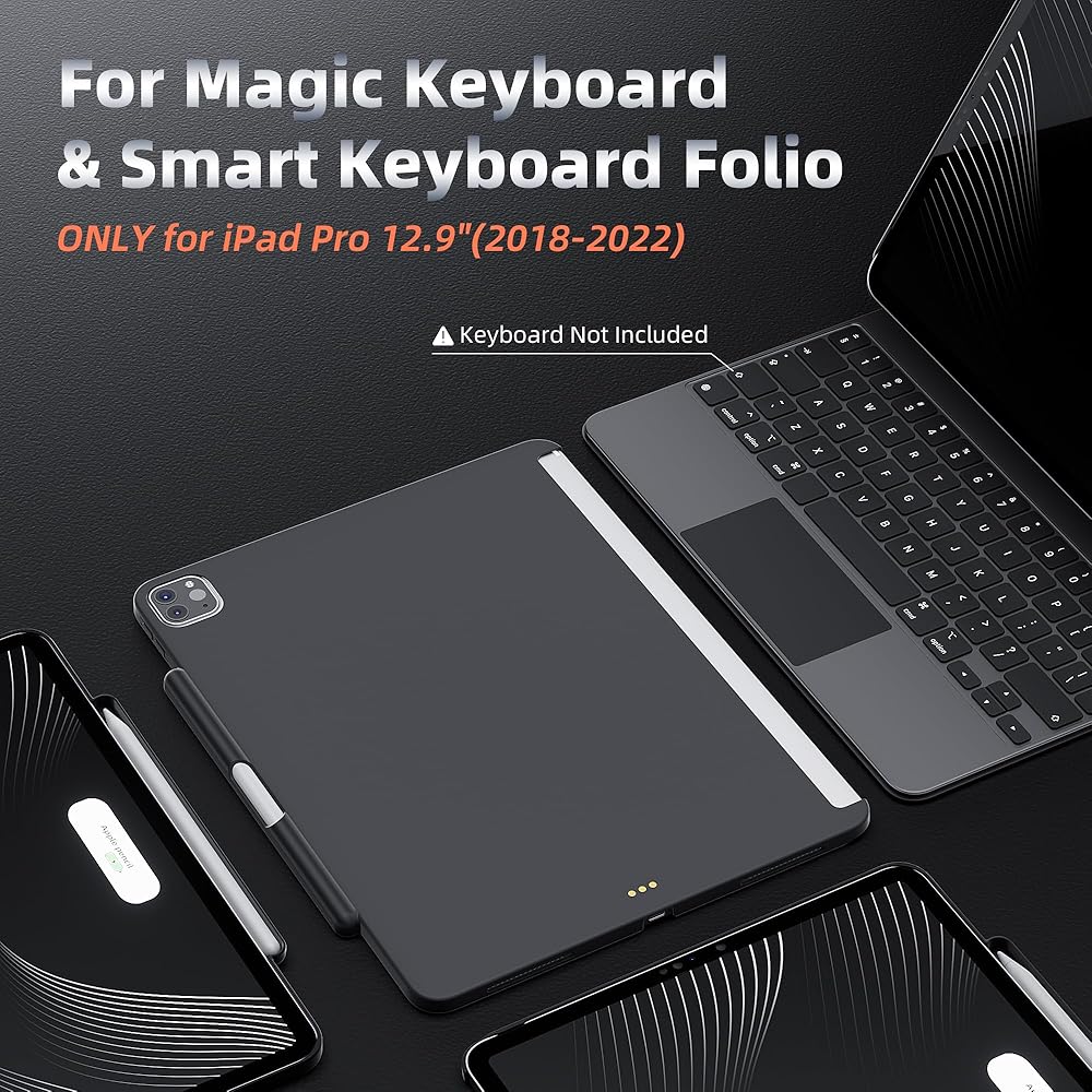 【التوافق: تتوافق حافظة iPad pro 12.9 هذه مع Magic Keyboard & Smart Keyboard Folio لجهاز iPad Pro 12.9 بوصة من الجيل الثالث إلى السادس من 2018-2022. 【ملاحظة】تصميم خاص لسلسلة iPad Pro 12.9 بوصة، هذه حافظة فقط بدون حافظة لوحة المفاتيح أو لوحة التتبع أو قلم Apple أو واقي الشاشة، كما أنها ليست حافظة لوحة مفاتيح سحرية
