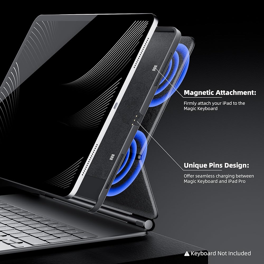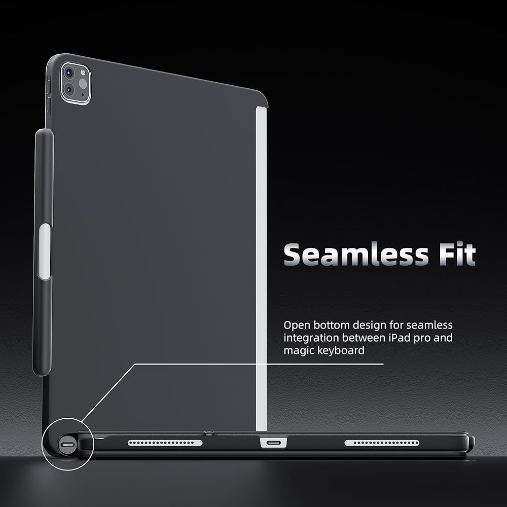 【ملاءمة سلسة】 يوفر التصميم ثلاثي الجوانب حماية يومية للظهر والجانب مع تمكين التكامل السلس بين iPad Pro وMagic Keyboard. فتحات دقيقة تمنحك الوصول الكامل لجميع الأزرار والمنافذ ومكبرات الصوت والكاميرات