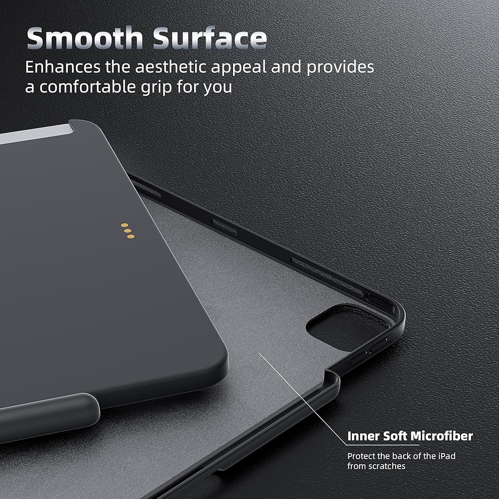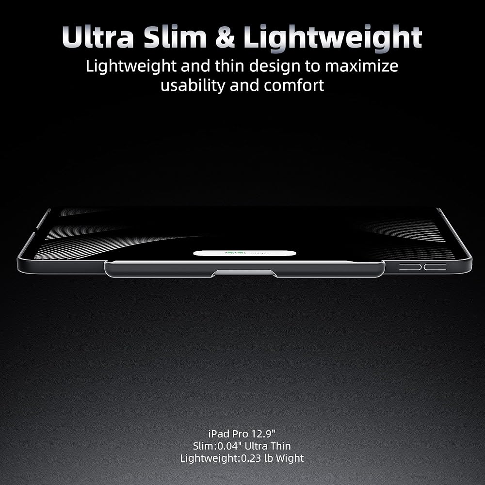 【رفيع وخفيف الوزن】 بسمك 1 مم فقط و104 جم، يمنحك شعورًا بالكاد واعيًا أثناء استخدام جهاز iPad Pro الخاص بك. نحافة ممتازة وخفيفة الوزن تجعل من السهل حملها
